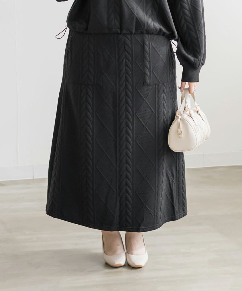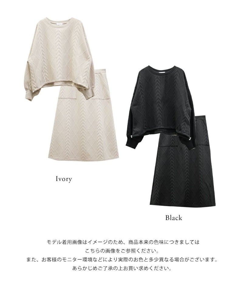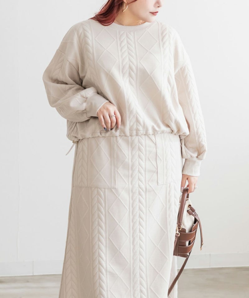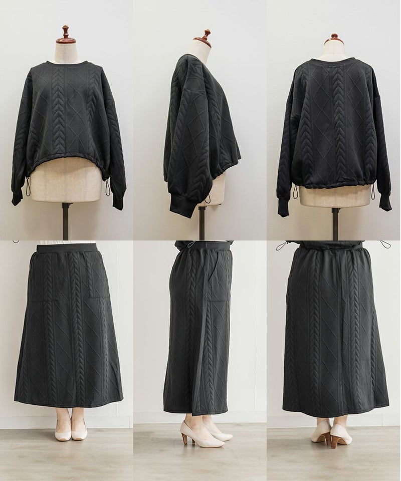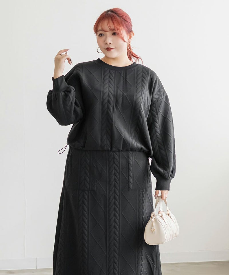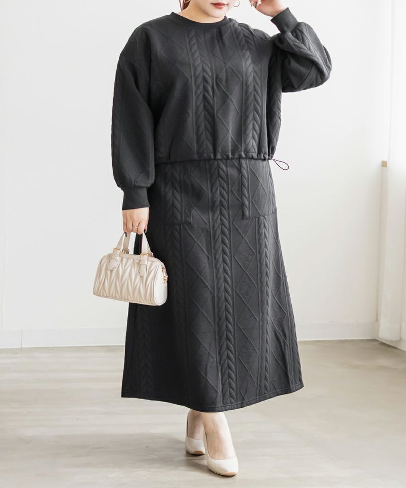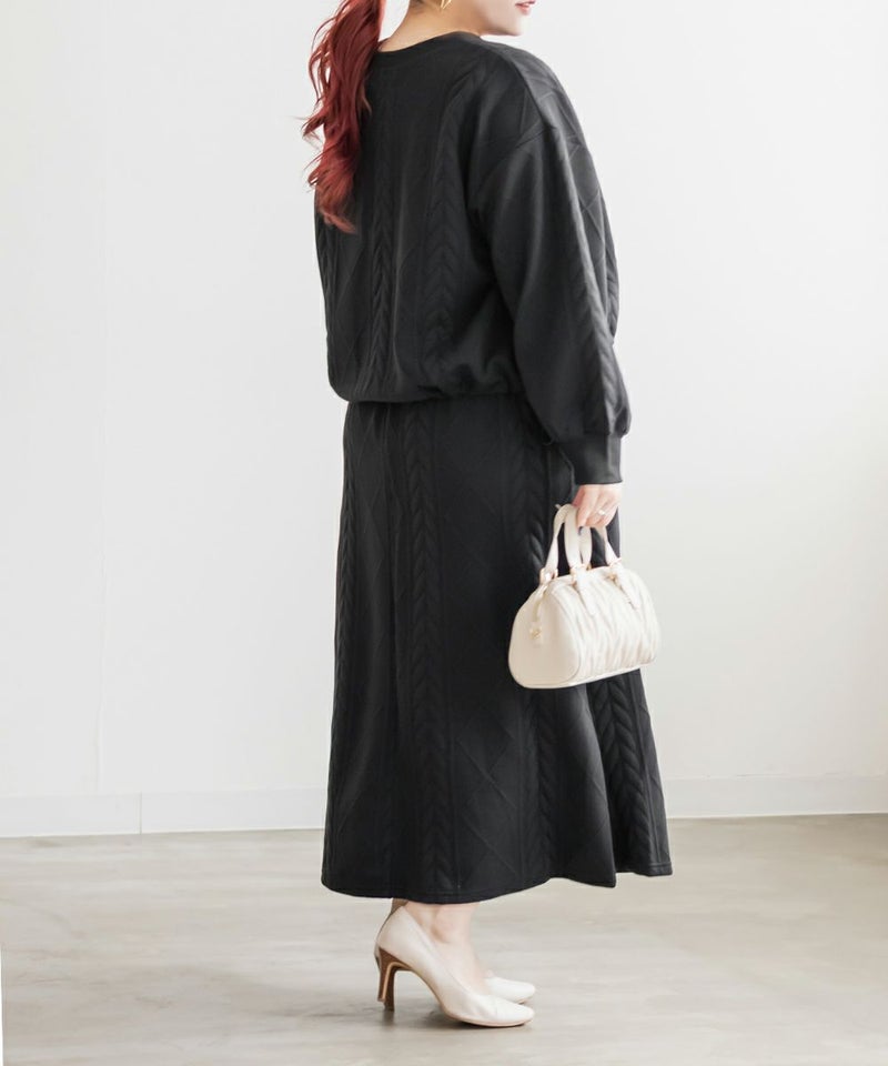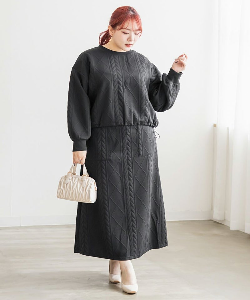 3Lサイズを着用して、ちょうどよく窮屈感無く着られました。スカートはフレアシルエットなので腰回りなど気になる所もカバーしてくれます♪トップスはドロストできる仕様で、絞って着用すると野暮ったくならずメリハリを持って着れました!軽くてやわらかい伸縮のある生地で着心地はとってもらくちんです◎セットアップになっているのでコーデいらずでこなれ感のある着こなしになれます。それぞれ単品でも着回しできるので1セットあると便利なアイテムです!