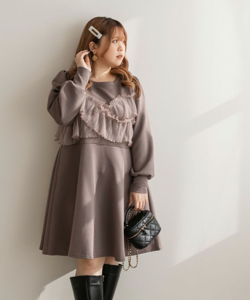 3Lを着て丁度いいサイズでした。トレンドのチュール生地を使ったビスチェをレイヤードしたようなデザインで1枚でかわいい!らくちんなワンピにチュールがくっついていてお腹や二の腕など気になる部分をしっかりカバーしてくれます◎1枚でフェミニンなスタイルが完成するコーデいらずの可愛いワンピースです!ボディラインを拾いにくい生地感とディティールがポイントです!重ね着が苦手な方でも悩まずにレイヤードスタイルになれて、可愛いだけじゃなくて着やせを考えたデザインなのが嬉しいです!