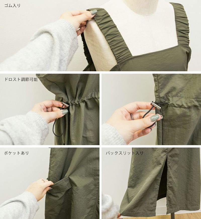 3Lサイズを着用して、全体的にゆったりとしたサイズ感でした♪ ウエスト部分はドロスト仕様になっていて、絞ることでシルエットの調整ができるのが嬉しいポイント◎ ストンと落ちるロング丈ですが、軽い生地感で動きやすく、リラックス感のある着心地でした! 大きめのポケットがアクセントになっていて、カジュアルな雰囲気に♪ 今回はレーストップスと合わせてフェミニンな印象にしましたが、Tシャツやスウェットと合わせればカジュアルにも着こなせる万能ワンピースです!