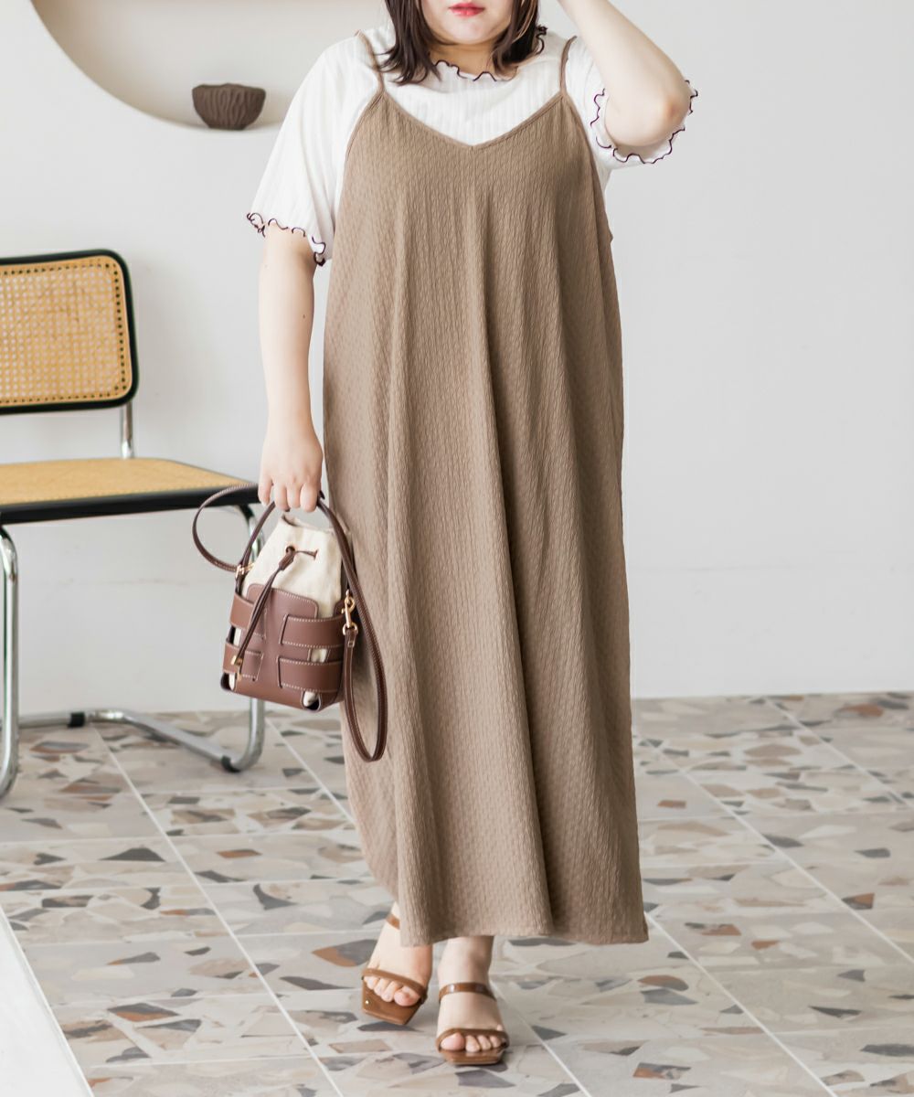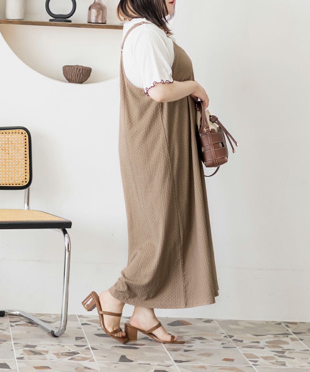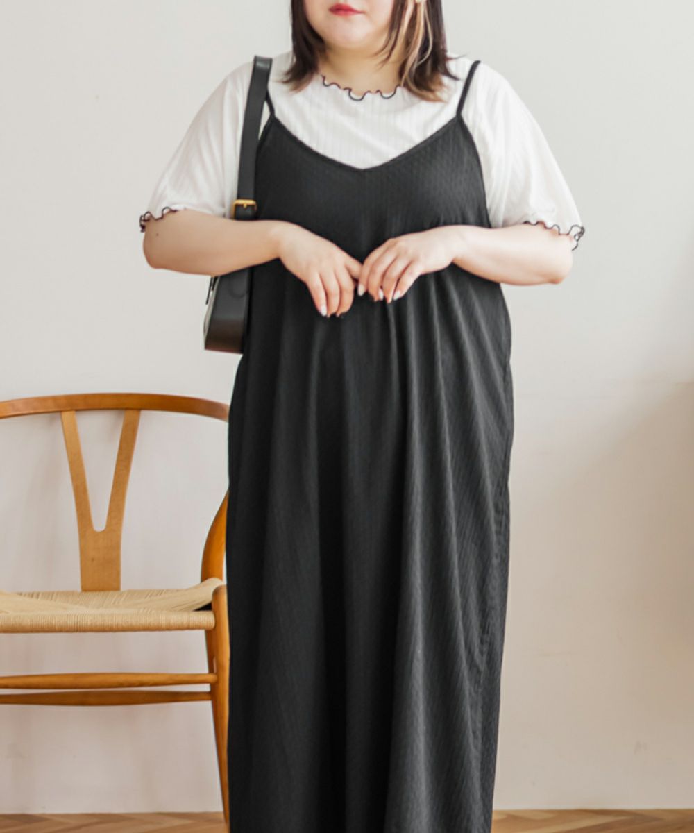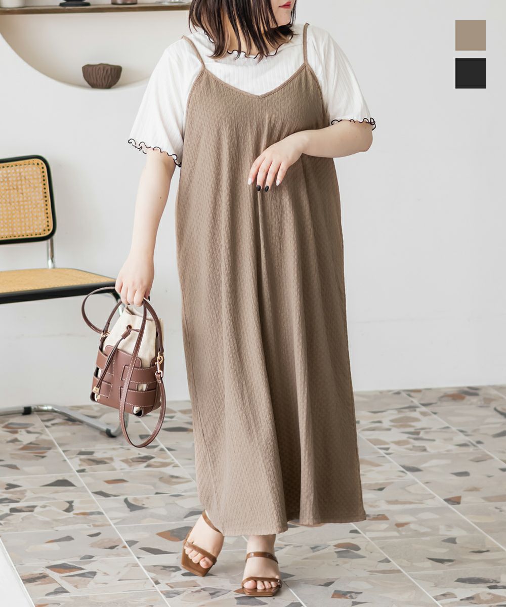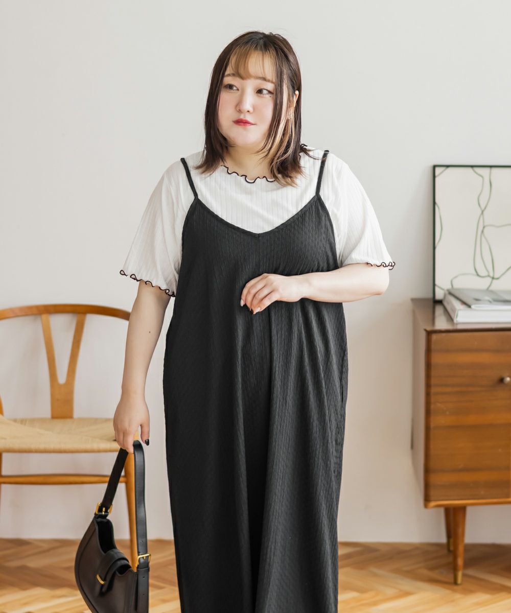 3Lサイズを着用してゆとりのある着心地でした。インナーは伸縮性がある柔らかい生地なので着脱も問題なく、楽な着心地でした◎インナーとワンピースがセットになっていて、コーデいらずでかわいく着こなせます♪それぞれ単品で着回しができるので、1セットあるとたくさん着回しができちゃいます!