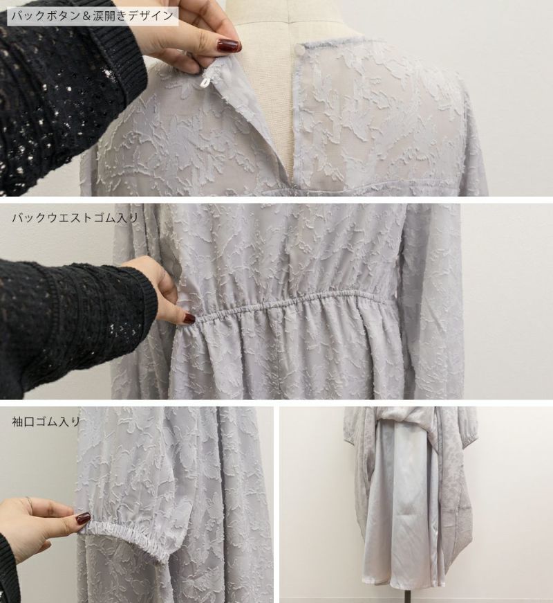 3Lを着てちょうどいいサイズでした!シンプルなデザインだけど透け感のある花柄調の生地が可愛くて大人っぽく着ることができます。デコルテから袖が透け感があるデザインで女性らしいです。春夏も使えますが、秋冬にはこの上にさらっとカーディガンを羽織ったりしてレイヤードするのもお勧めです!かさばらないすっきりとしたデザインだから、ビスチェを上に合わせたりするのもトレンド感があって可愛いです◎上品な印象なので、二次会など、ちょっと綺麗めなシーンにも使えちゃいます!