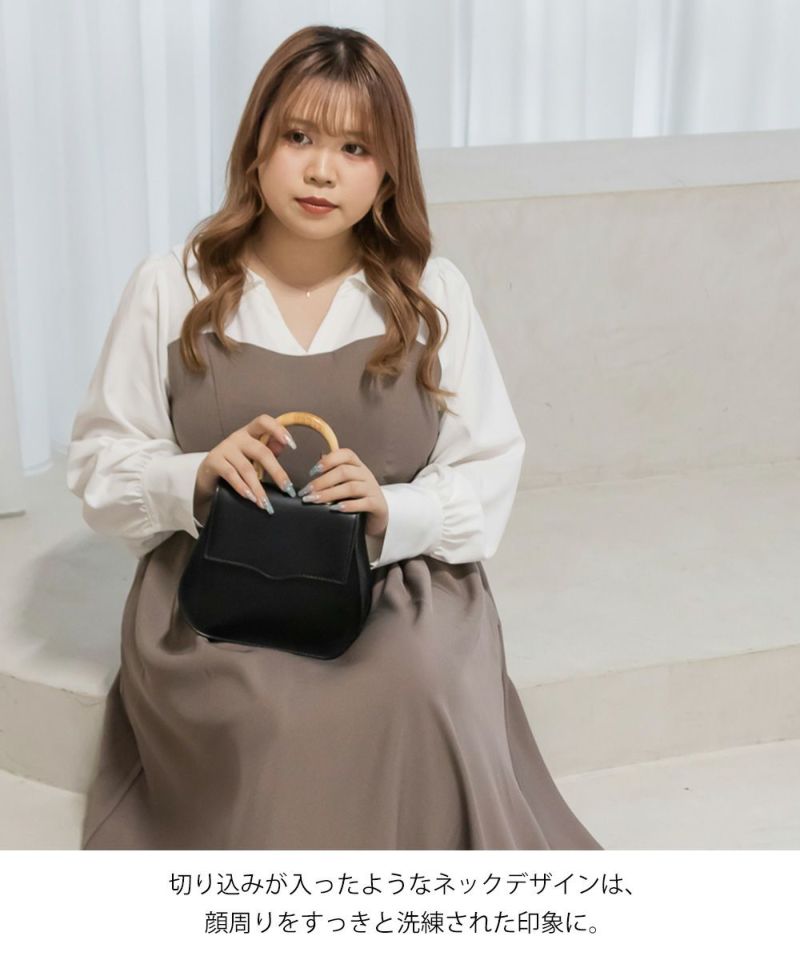3Lを着て丁度いいサイズでした。シャツをベアワンピに重ね着してる風のデザインだから、1枚でコーディネートしてる雰囲気になれるお得感のあるデザインです◎襟デザインが大人っぽくて、しかも綺麗に開いているから顔回りもすっきりした印象になれるのが嬉しいです!シンプルで大人っぽく着用できるので色々なシーンで使えそうなワンピースです♪