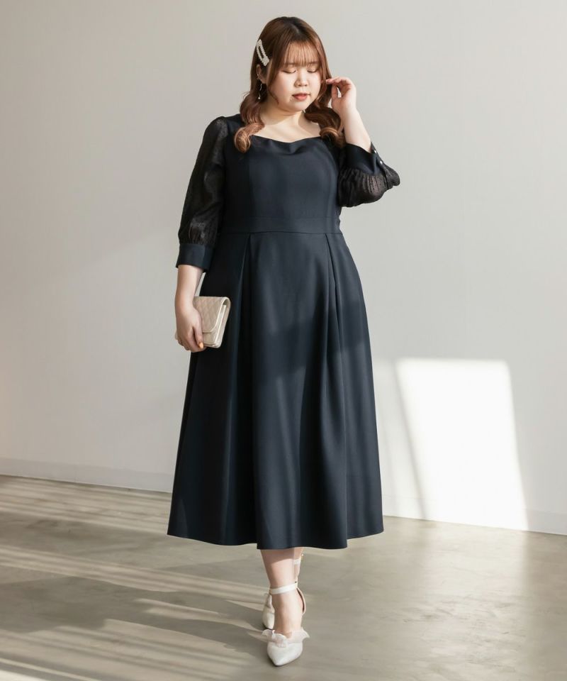 3Lを着て丁度いいサイズでした。ネック周りが綺麗なラインで開いていて女性らしさたっぷりのデザインです◎胸元がどちらかというと見えやすいので、あまり強調したくない方にはお勧めできないかもしれません。袖は上品な透け感でふんわりとしたボリューム感がとにかく可愛いです♪ドット柄なのもあって透けすぎなくて二の腕が気にならないのも嬉しいです!ウエスト切替でタックもあるから、お腹周りや腰周りが全く目立たずに着る事が出来ました◎女性らしい部分はしっかり強調して、気になる部分は隠してくれる、細かな部分まで考えられたワンピースです!普段使いはもちろん、特別なお出かけやセミオケージョンにもおすすめな1枚!小物使いで印象が変わるのでコーディネートの幅が広がります!