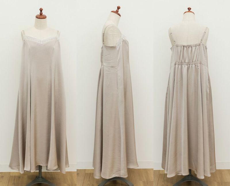 3Lサイズを着用しました。肩ひもはアジャスターで調節ができるので、自分の身長に合わせてバランスよく着ることができました◎ウエスト周りやヒップに程よくゆとりがあり、身体のラインを拾いすぎず、きれいなシルエットで着られました。繊細なレースが胸元に使われていて、フェミニンな雰囲気たっぷり♪ でも甘くなりすぎず、大人っぽく着こなせるのが嬉しいポイントです。季節を問わずインナー次第で着回しが効くのも魅力的です!Tシャツやブラウスとのレイヤードはもちろん、羽織を合わせてもレースが映えるので、1枚持っておくと本当に便利なアイテムだと思います◎