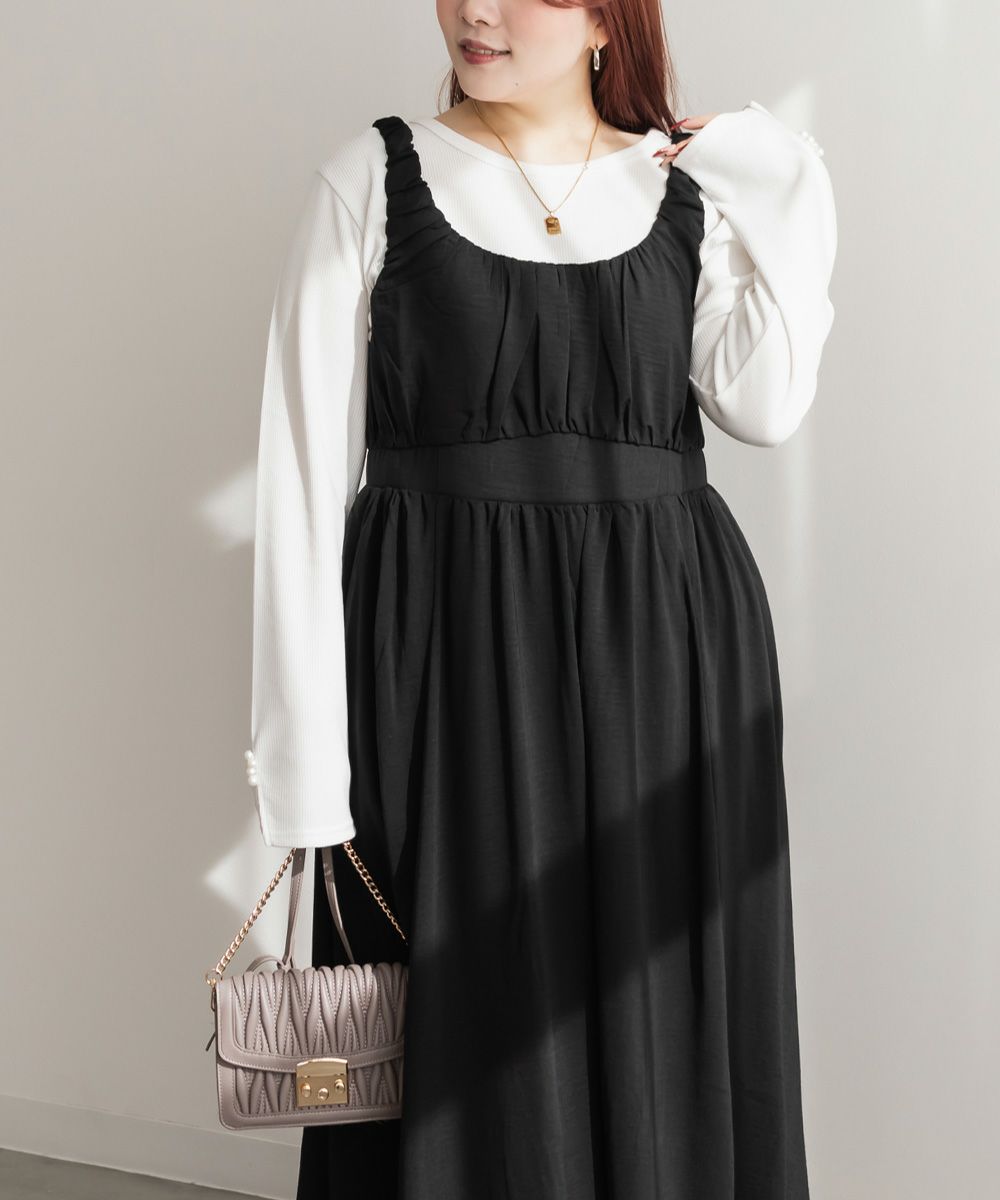 3Lサイズを着用しました。バストはゴムが無かったので、心配な方はサイズ確認をお勧めします◎ ノースリーブでも脇が開きすぎていないので、1枚でも安心して着用できました。ギャザーがたっぷりでボディラインを拾いにくいデザインが嬉しいです! 1枚でもインナーを重ねも使えて着回しが効くアイテムです!大人っぽいデザインとカラバリでこなれ感のあるスタイリングにぴったり!