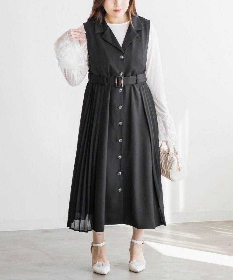 CLETTEオリジナルサイドプリーツジレワンピース CLETTEオリジナルサイドプリーツジレワンピース