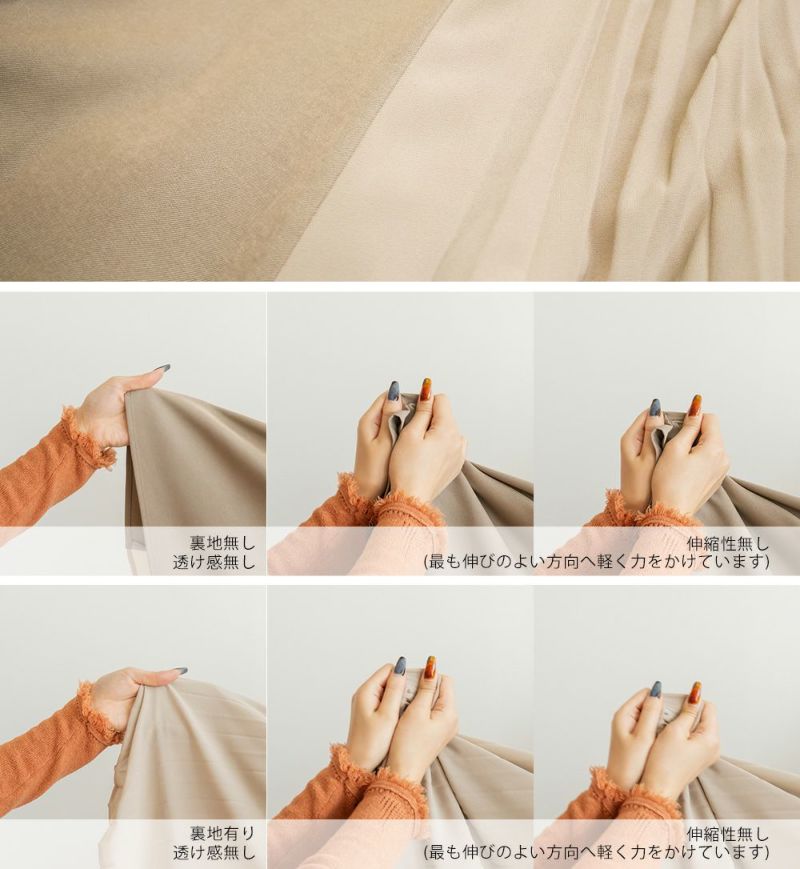 裏地・透け感・伸縮性 裏地有り、透け感無し、伸縮性無し
