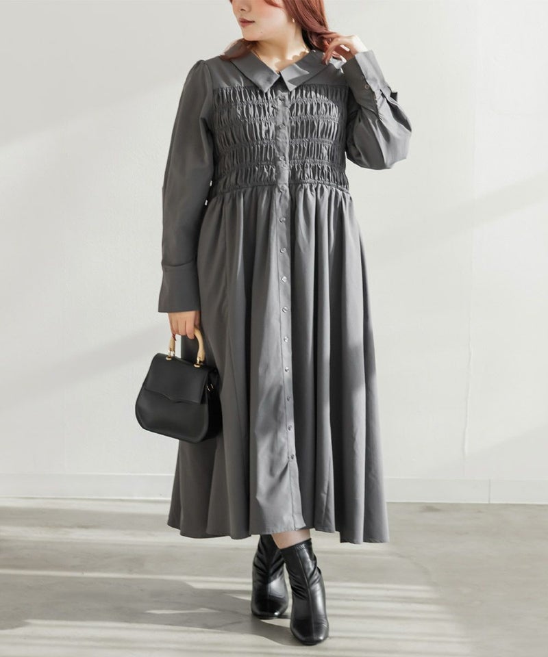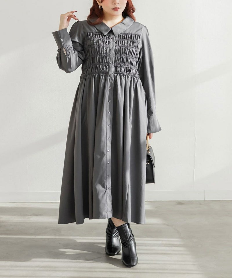 好感度高めな印象になれるなシャツ襟デザインのワンピース。シンプルなシャツワンピースとちがいフェミニンな雰囲気もあるから、おでかけに着ていきたくなるデザイン。ブーツや品のあるバッグと合わせた大人っぽい着こなしがおすすめ。ロング丈でスタイルアップできるバランスだから、スニーカーやローヒールシューズとも相性良し◎