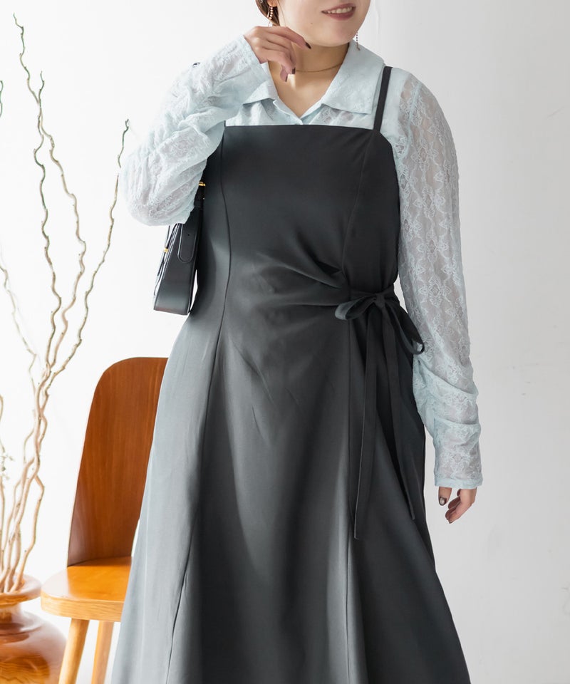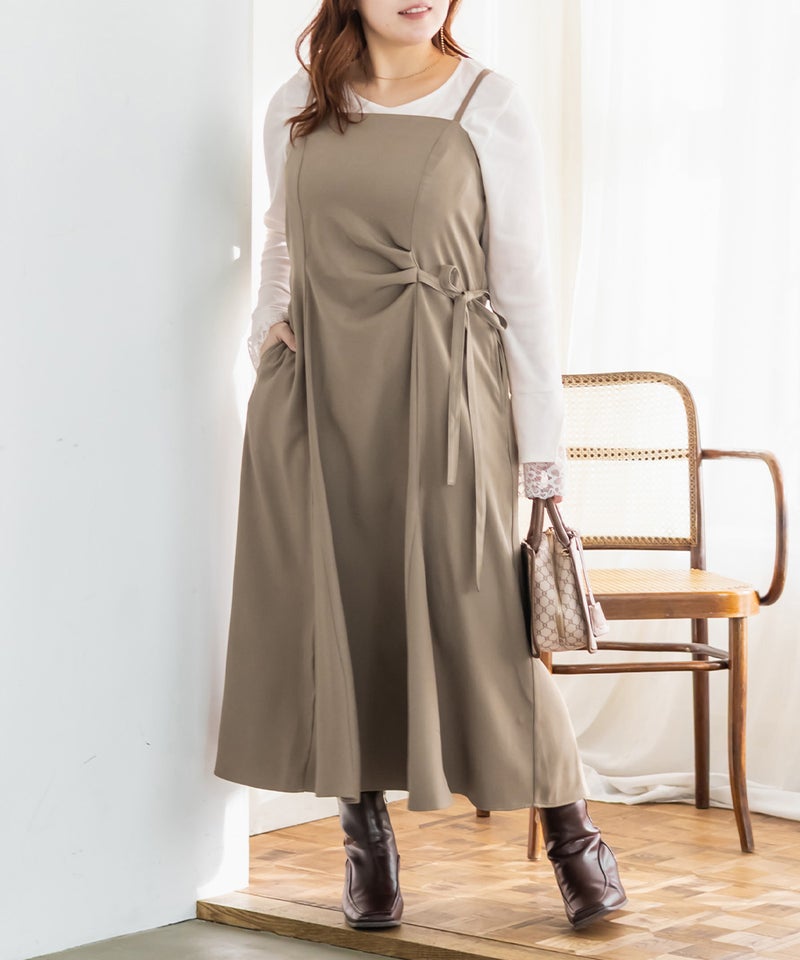 3Lサイズでちょうどよく、いつも通りのサイズ感でした。すっきりしたシルエットですが、ちゃんと身幅があったので窮屈感なくらくちんな1枚でした!ウエスト部分に少しのギャザーと片側にリボンがついているデザインで、シンプルすぎず、大人っぽい雰囲気のワンピースです。パネル切替になっているので、お腹周りも目立たず綺麗なシルエットです!インナー次第でロングシーズン着回せるアイテムです◎