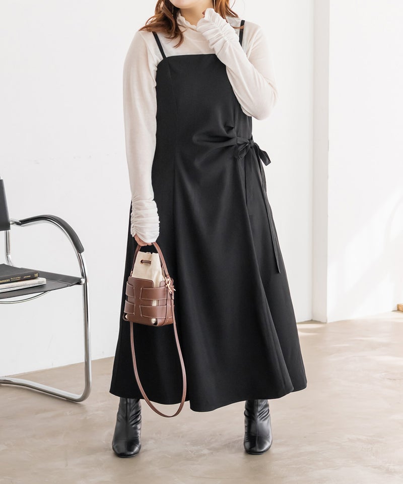 【design】サイドリボンとフロントタックがウエストのメリハリを出してくれ着やせ効果あり。シンプルだけど洗練された印象に。美しく女性らしいシルエットがスタイリングに縦ラインを生み、スタイルアップを叶える。【material】程よい厚みでオールシーズン着用可能。透け感がないので1枚で安心して着用できる。【styling】合わせるインナー次第で様々なスタイルを楽しめます。シアーアイテムと合わせ、抜け感を出し大人っぽく仕上げるのもおすすめ。取り入れるだけで洗練された着こなしが即完成◎