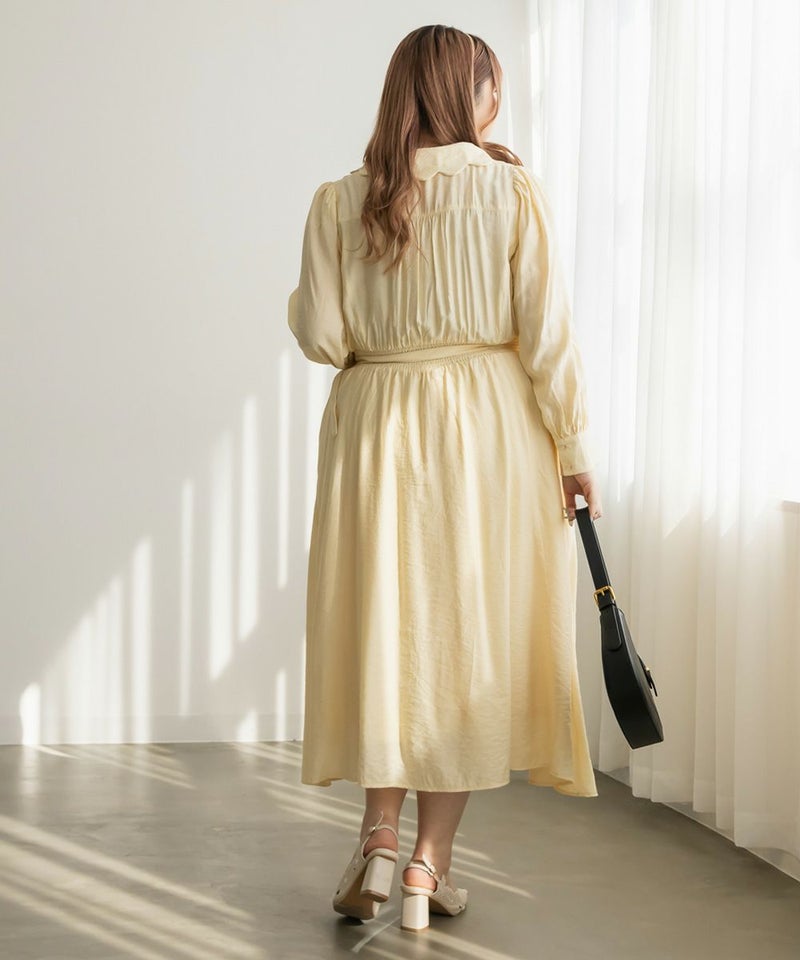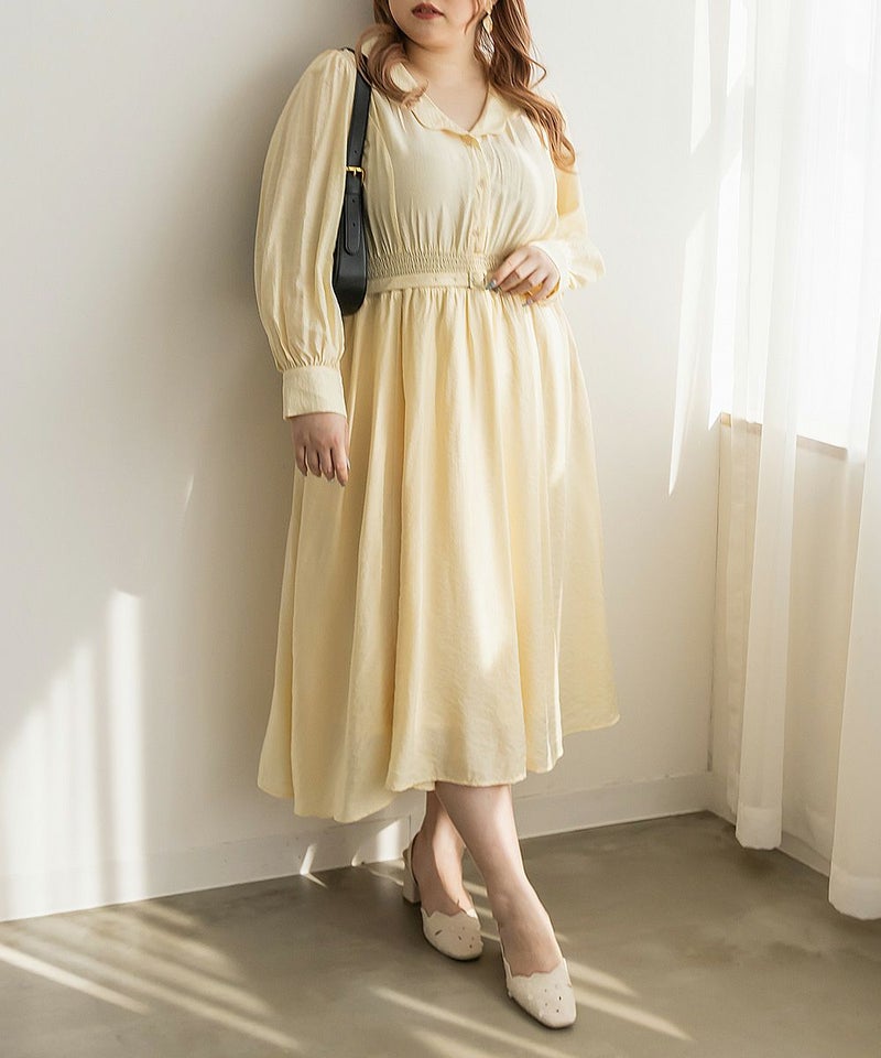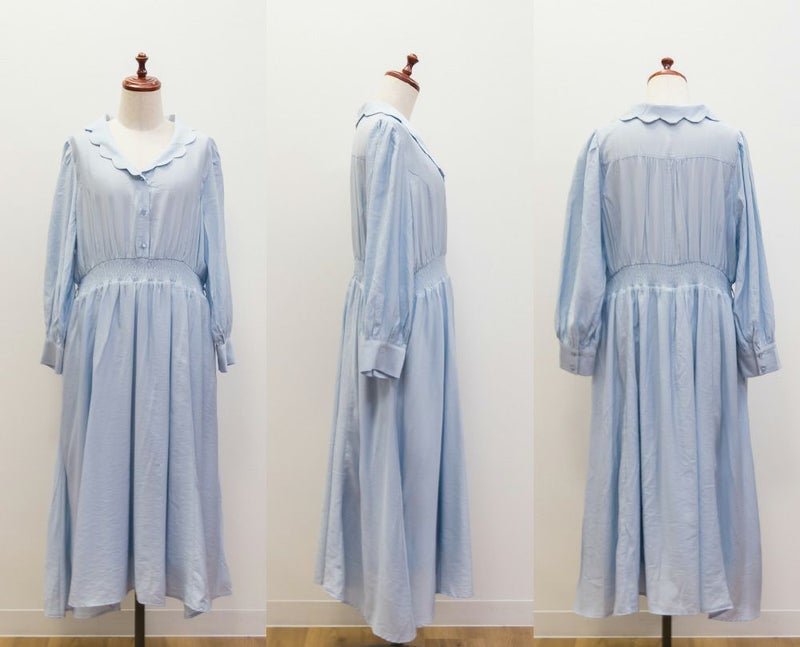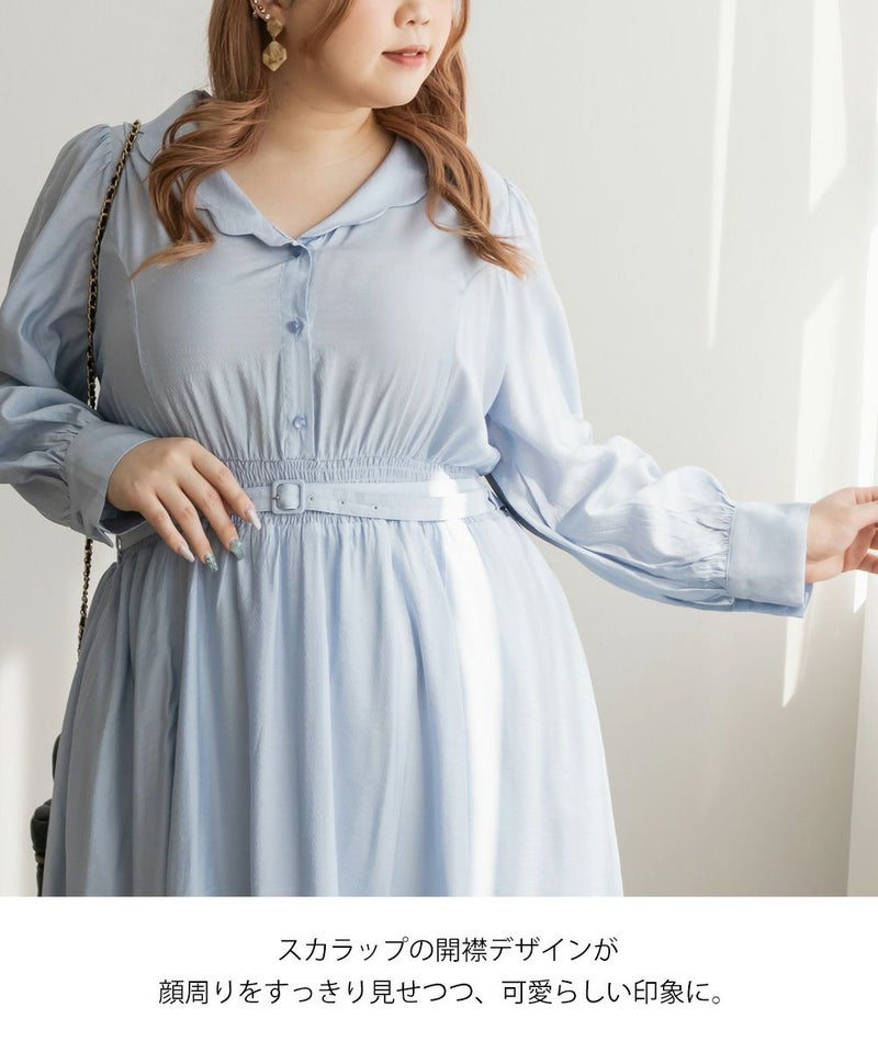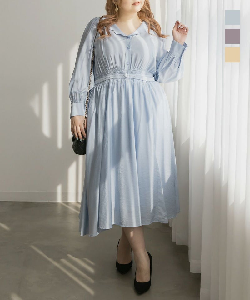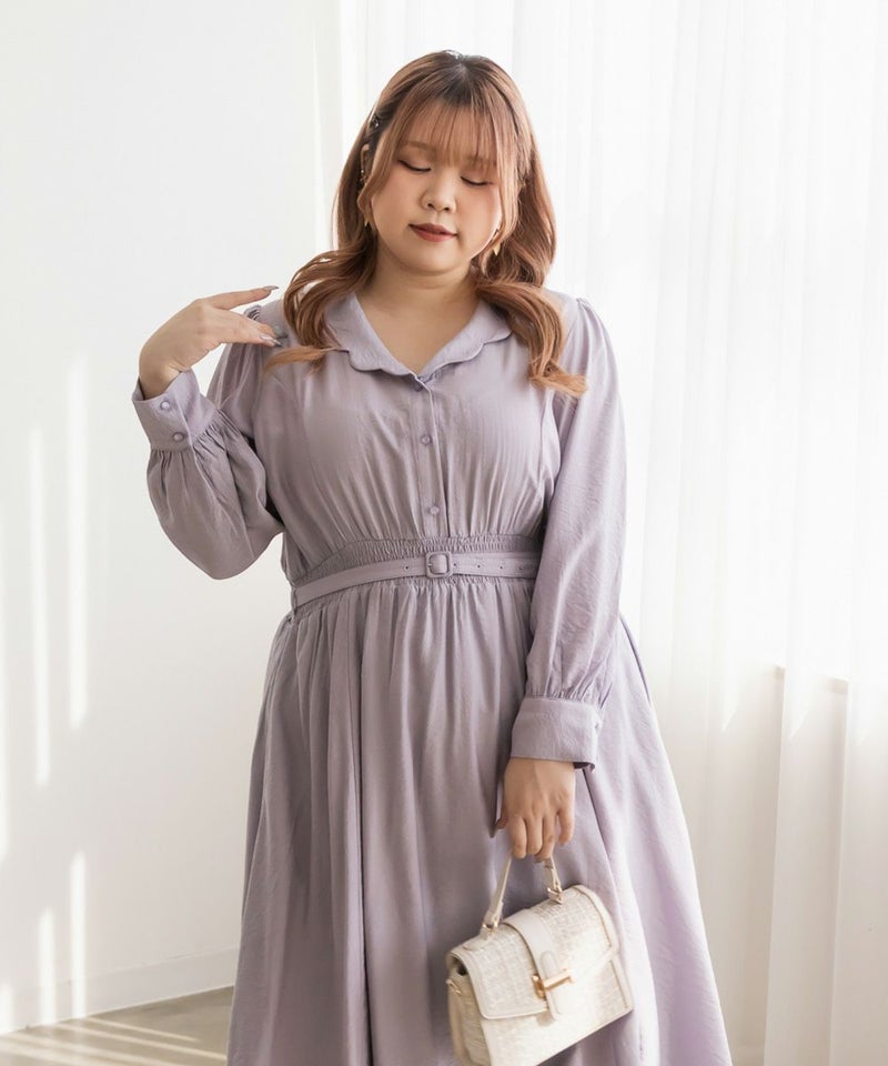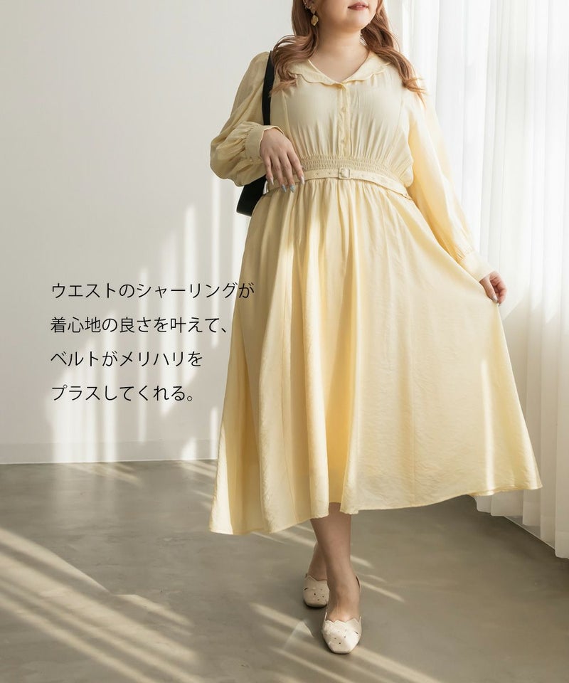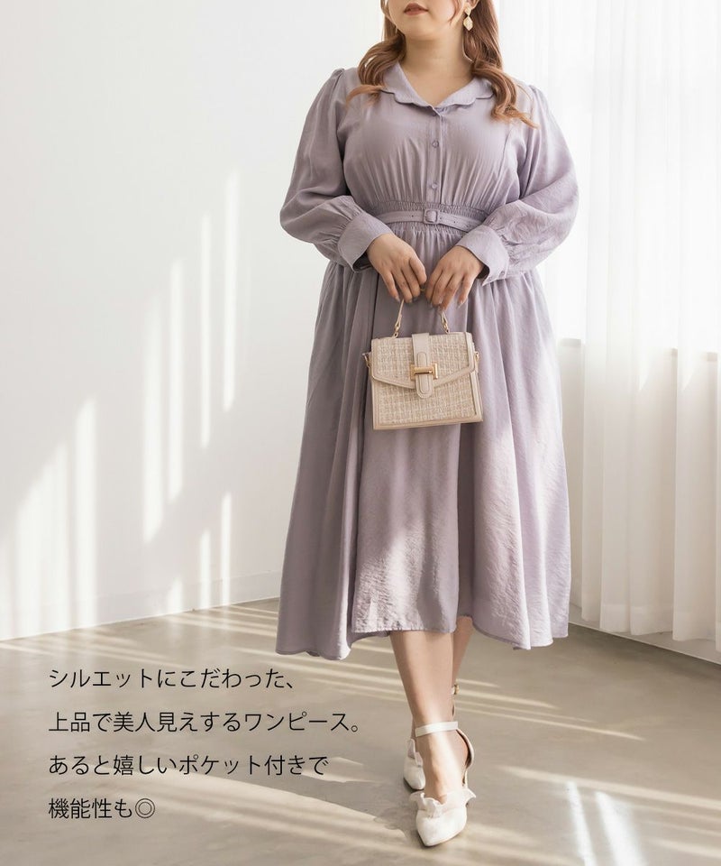 3Lサイズを着用してちょうどいいサイズ感でした。ウエストはシャーリングゴムになっていて着心地とってもらくちんでした!同色の細ベルトがついていて大人かわいい1枚です!キュッとしたウエストからフレアに広がるスカートがひらひら揺れてフェミニンな印象です。韓国っぽいシャツ襟が今っぽくて1枚で着映えるワンピース!程よく薄手の生地なので、秋~春までたくさん使えます!デートやお出かけにお勧めのワンピースです♪
