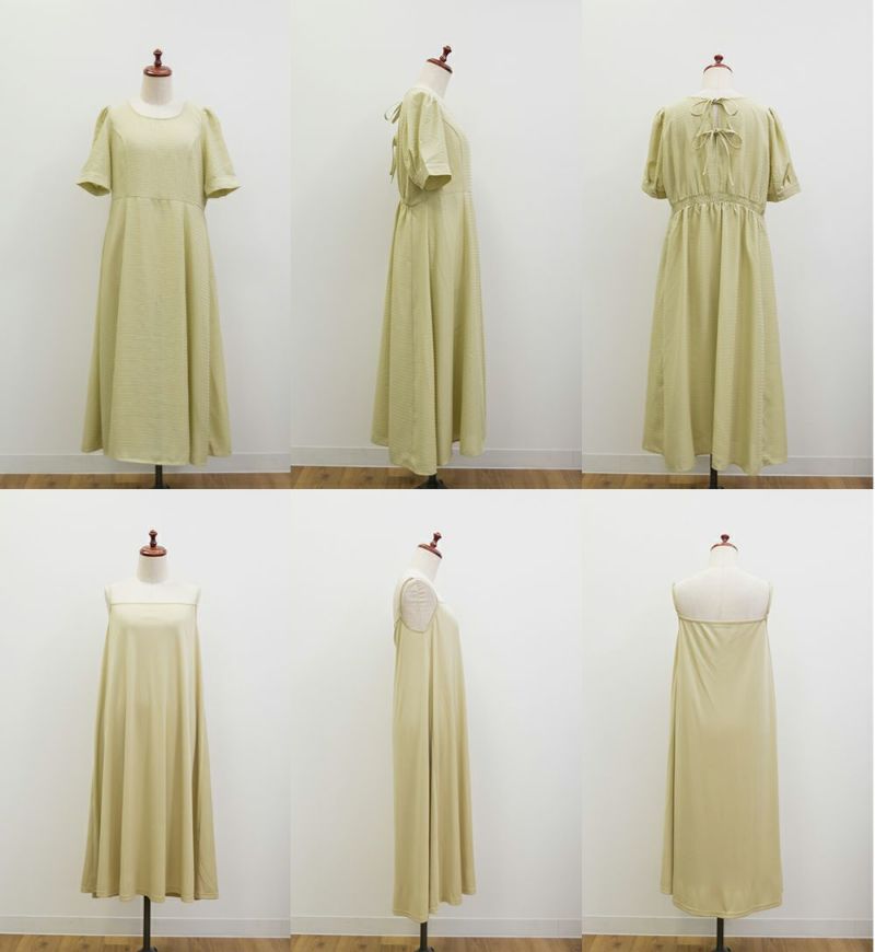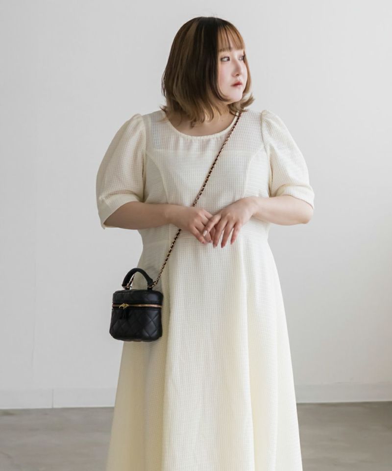 LLサイズを着用していつも通りのサイズ感で着用出来ました!後ろリボンは自分で結ぶ仕様だけど、すっきり開いたネックで着脱もらくらくできました!大人っぽく洗練されたシンプルなデザインで、春夏のお出かけにピッタリです!生地のチェック柄は可愛いだけじゃなくシワになりにくい感じだったのも嬉しいです♪ペチコートもセットでついているので、一緒に着用して透け感も心配なかったです◎すっきり見えるように計算されたディティールなので着?せ効果も感じました!