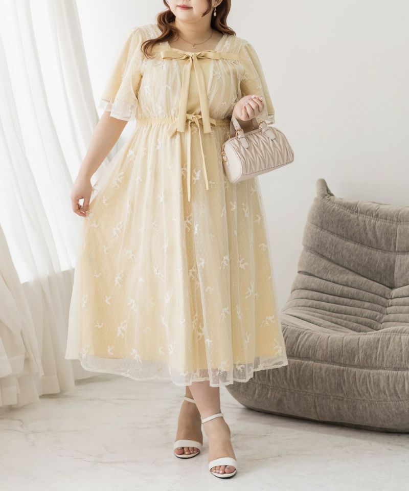 3Lサイズを着用して、身頃に程よくフィット感がありつつも、チュールの広がりで下半身をふんわりカバーしてくれる着心地でした◎前後2WAYでアレンジできるので、その日の気分やスタイリングに合わせて楽しめるのが嬉しいポイント♪軽やかな花柄チュール生地が重なっていて、ふんわりと揺れるシルエットがとにかく可愛いです!普段使いはもちろん、お呼ばれやデートなど特別なシーンにも活躍してくれる主役級ワンピースです!