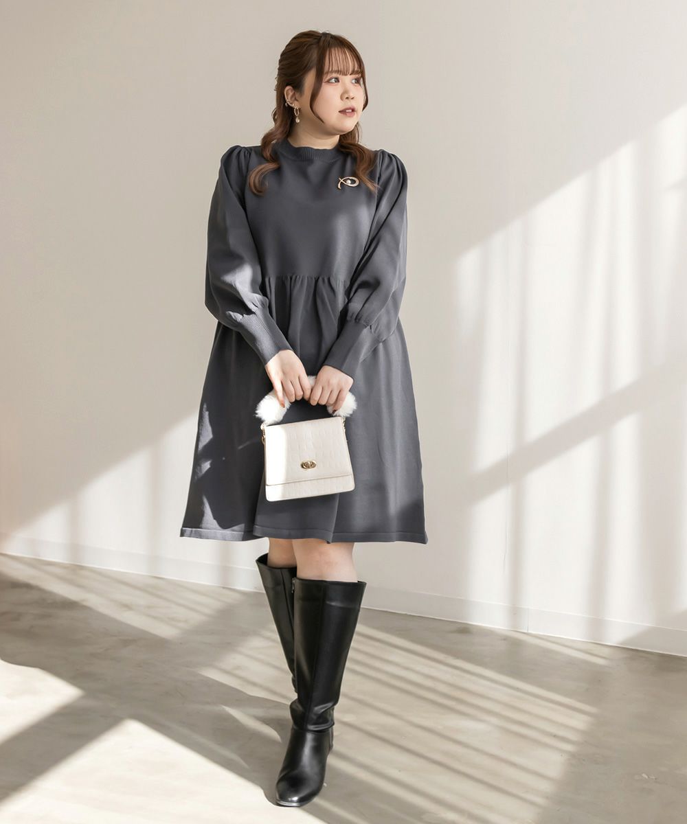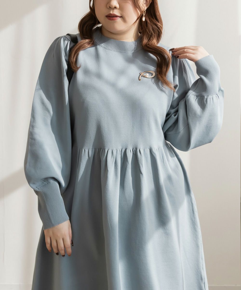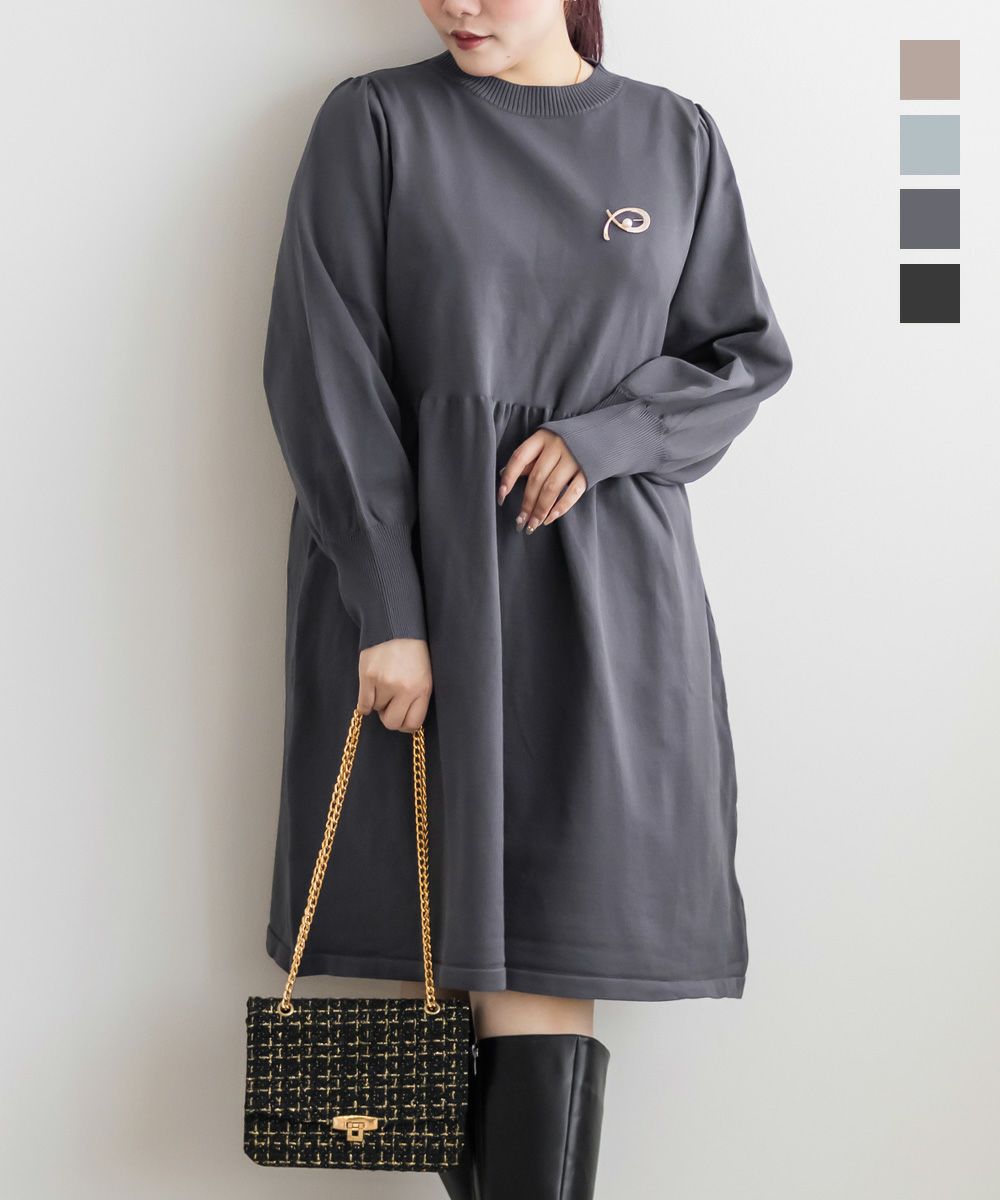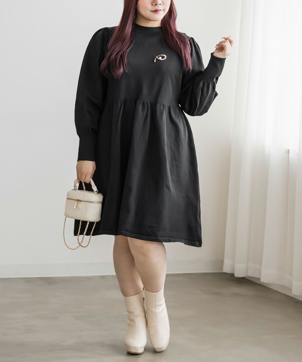 3Lサイズを着用してちょうどいいサイズ感でした。伸縮性があって着心地が良いけど程よくハリがあってボディラインも拾いづらい生地感なのが嬉しいです◎スポンジニットなのでとっても軽いのも魅力!首元はプチハイになっていて女性らしい雰囲気です。お腹やお尻のシルエットが出にくいフィット&フレアシルエットで、スカートもミニ丈になり過ぎない膝丈なので大人っぽく着られます。ブローチは大人っぽいデザインでカジュアルになりすぎず大人かわいく着れるワンピースです♪