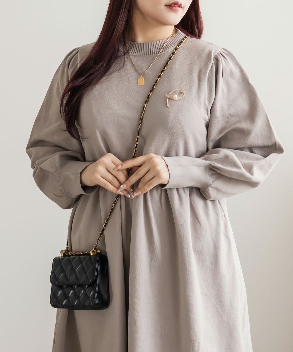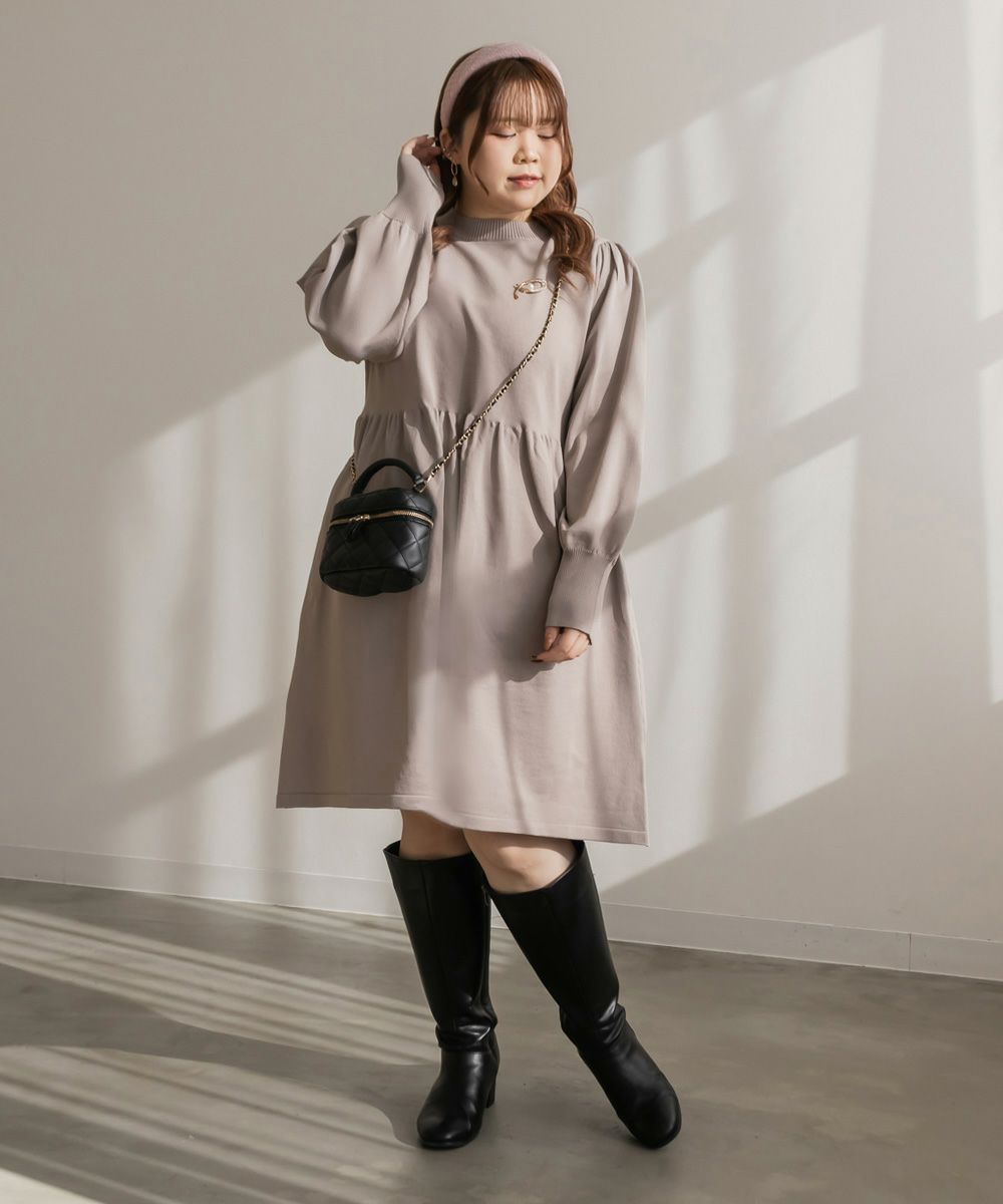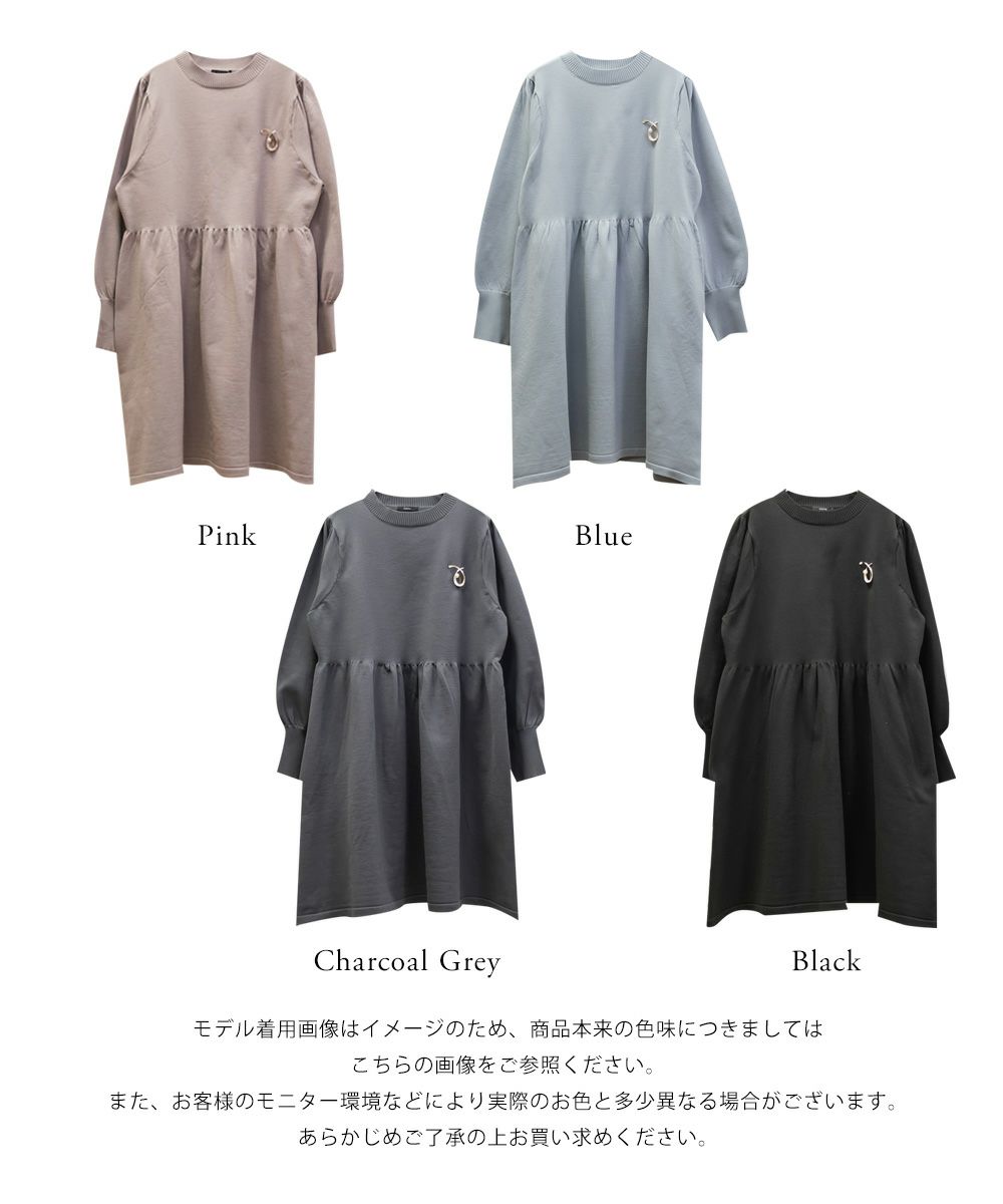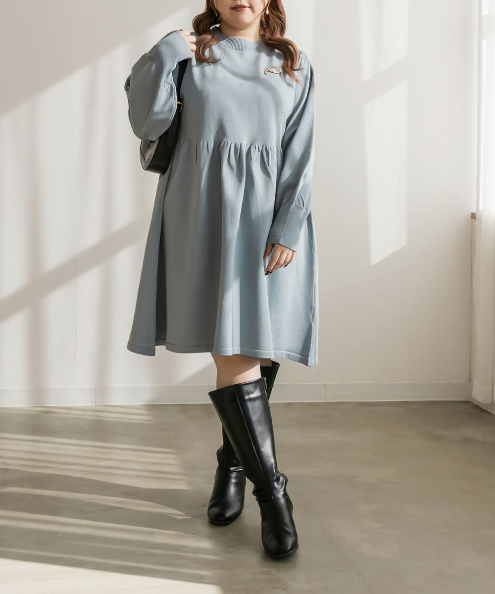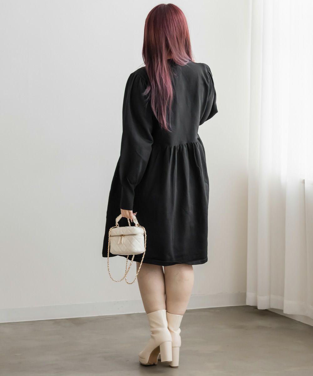3Lサイズを着用してちょうどいいサイズ感でした。伸縮性があって着心地が良いけど程よくハリがあってボディラインも拾いづらい生地感なのが嬉しいです◎スポンジニットなのでとっても軽いのも魅力!首元はプチハイになっていて女性らしい雰囲気です。お腹やお尻のシルエットが出にくいフィット&フレアシルエットで、スカートもミニ丈になり過ぎない膝丈なので大人っぽく着られます。ブローチは大人っぽいデザインでカジュアルになりすぎず大人かわいく着れるワンピースです♪