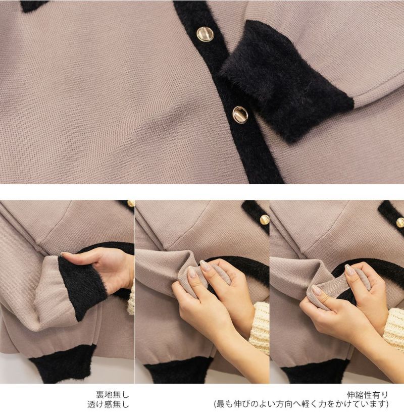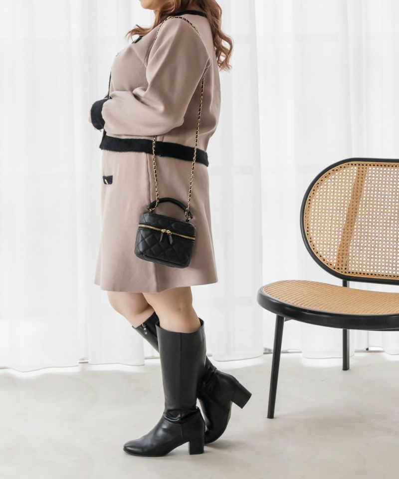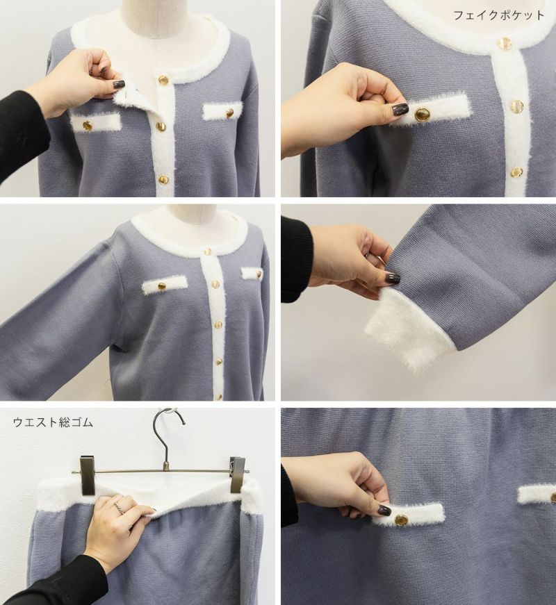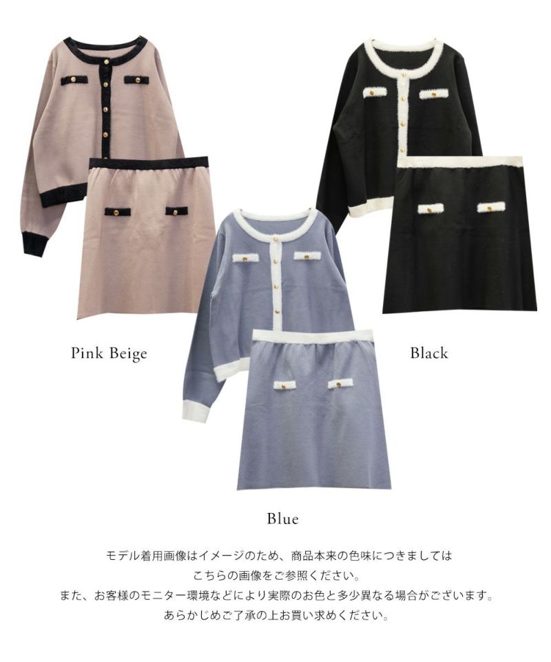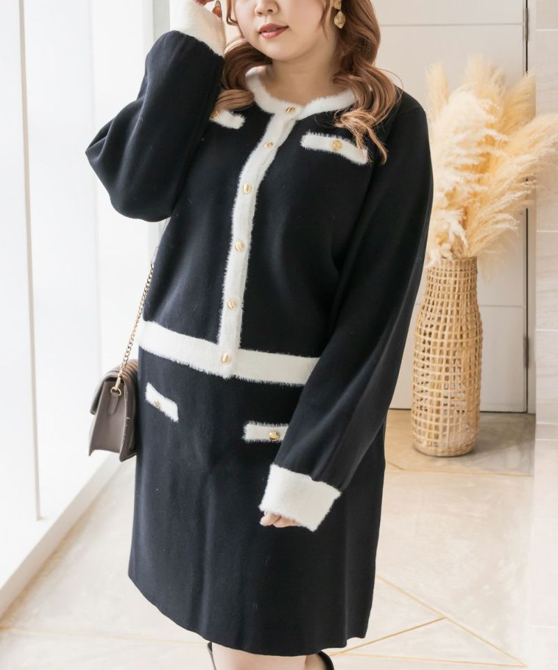 3Lサイズを着用してちょうどいいサイズ感でした。網目が詰まった高級感のあるニット素材になっているので、上品に着こなすことができます◎しっかりした素材感なのでボディラインも拾いづらいです!トップスはゆとりがありつつすっきりとコンパクトな印象に着られて、スカートはお腹やお尻のシルエットが出にくいように少しゆとりがありました!ニットはボディラインを拾いやすいイメージがありますが、このアイテムなら安心感して着ることができます。スカートもミニ丈になり過ぎずに上品な丈感です。ニットなので、伸縮性があって着心地が良いのも嬉しいです。配色がアクセントになって、全体的にすっきりとフェミニンに着こなせます!大きいサイズでこういったデザインは少ないので、いろんな方におすすめしたいセットアップです♪