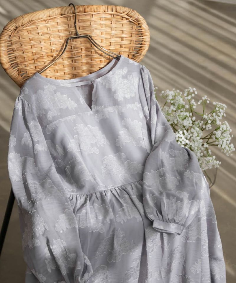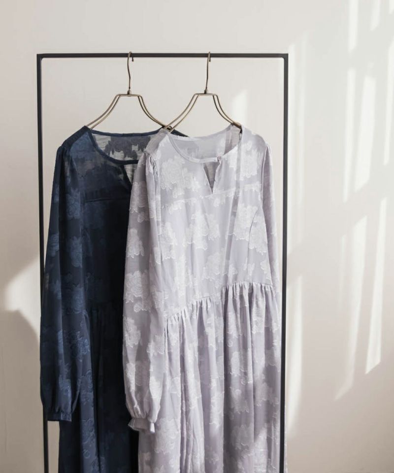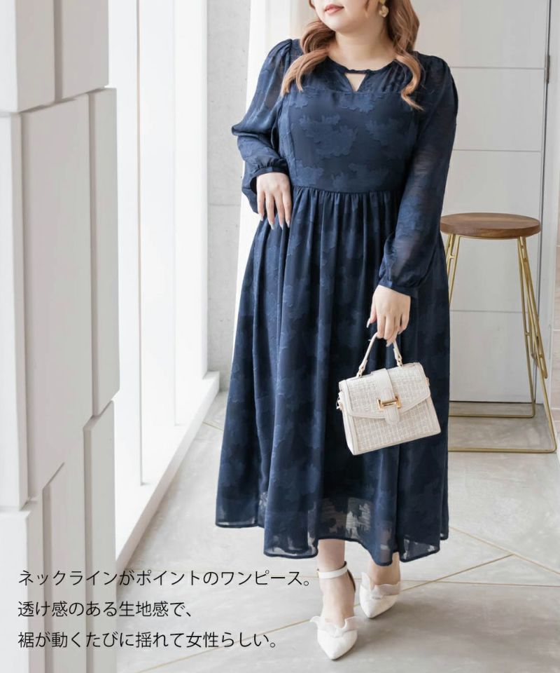 クレット 大きいサイズ セミオケ ドレス 綺麗め デート服 フェミニン お呼ばれ CLETTEオリジナル★デザイン襟花柄ジャガードシアーワンピース