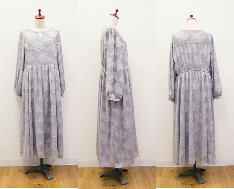 3Lを着てちょうどいいサイズでした!シンプルなデザインだけど透け感のある花柄調の生地が可愛くて大人っぽく着ることができます。デコルテのデザインが大人っぽく抜け感のある肌見せが叶います◎春夏も使えますが、秋冬にはこの上にさらっとカーディガンを羽織ったりしてレイヤードするのもお勧めです!上品な印象なので、二次会など、ちょっとしたオケージョンにもおすすめです!