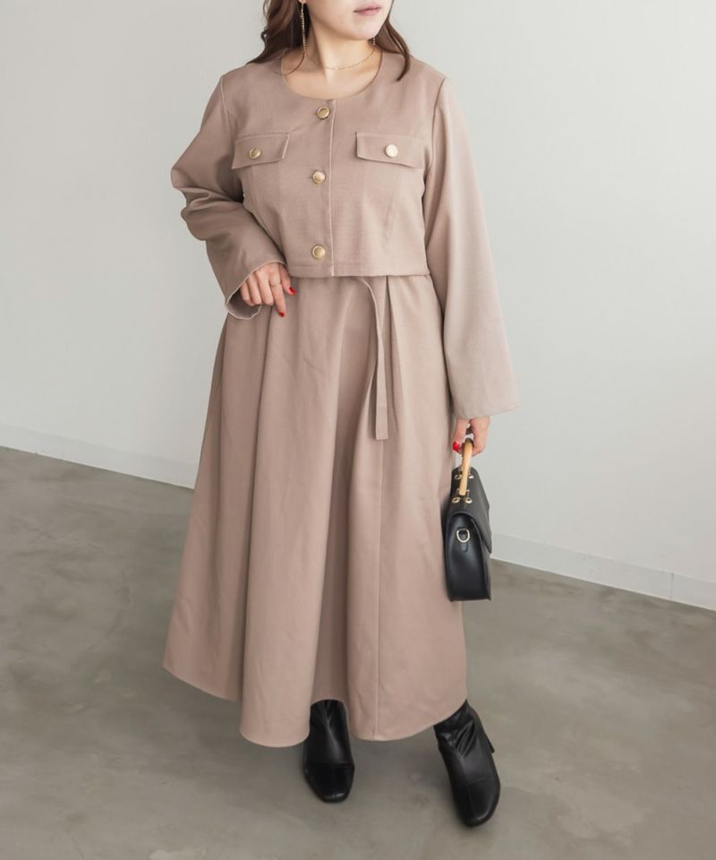 3Lを着て丁度いいサイズでした!キャミワンピは後ろゴムがあったので窮屈感無く着られて、心配な方はジャケットのサイズ確認をするのがお勧めです◎キャミワンピと短丈ジャケットのセットで着ると足が長くスタイルアップして見えました!ジャケットだけ、ワンピースだけでも着回しできるから1セットで色々なスタイルを楽しめます。コーデいらずで可愛く決まるアイテムなので秋冬にたくさん着回ししたいです!