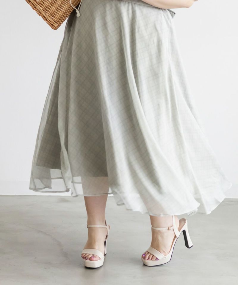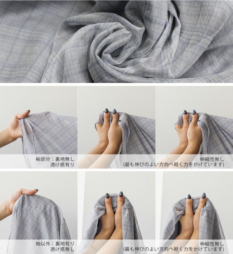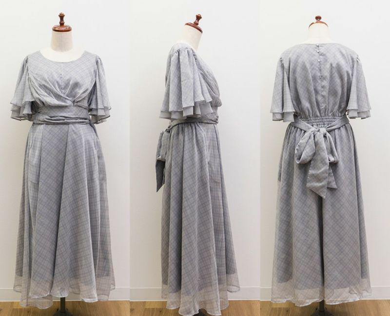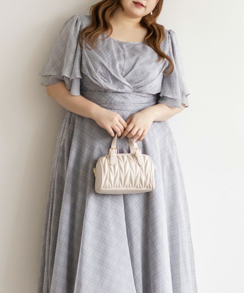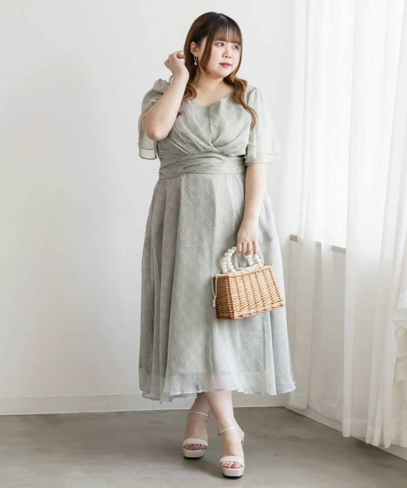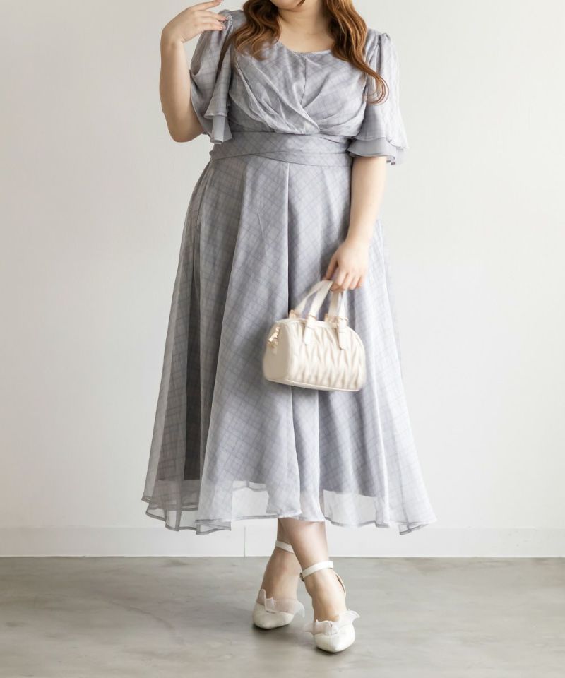 3Lサイズで全体的にちょうどよく、軽い生地感で快適な着心地でした。後ろゴムなので特に窮屈感はなかったです。透け感のあるチェック柄が儚げで、ニュアンス感のある色味が可愛い!共布リボンでウエストマークできるので、メリハリがついてバランス良く見えます。長いリボンを前でクロスして、後ろで結ぶお洒落なデザインになっていて、キュッとくびれを演出してくれるのにさりげなくお腹周りのカバーにもなります。袖とスカートは、気になる部分をふわっと隠してくれるのもうれしいポイント♪裏地付きなので安心して着られ、1枚でさらっと着映えるワンピースです◎