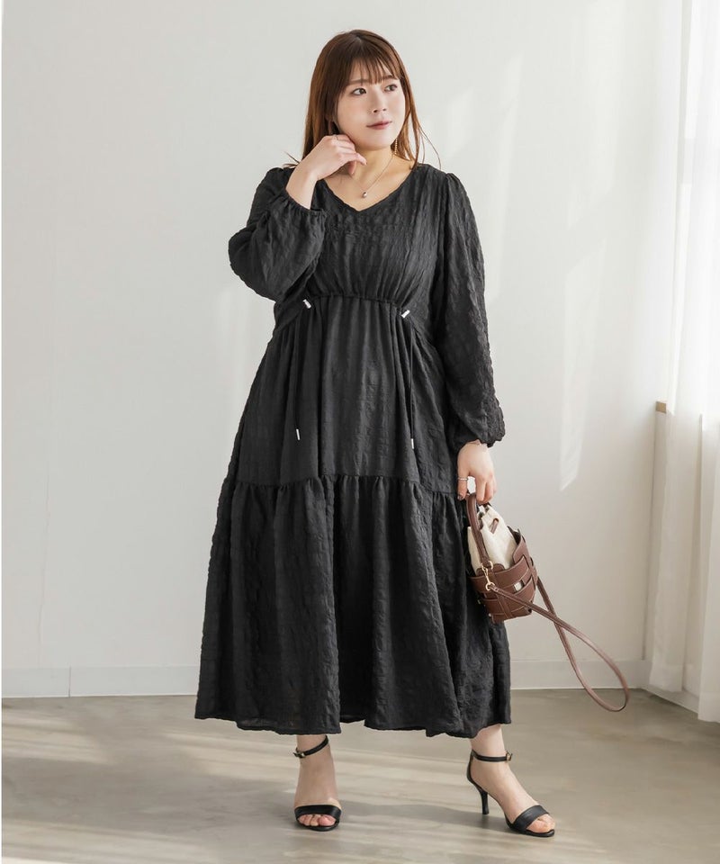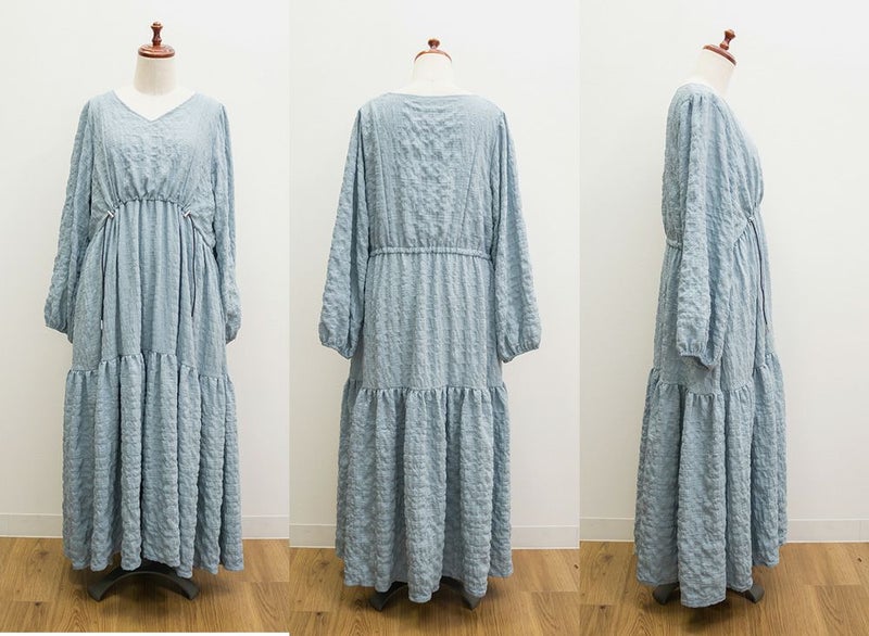 ロング丈でスタイルアップできるデザインだから、スニーカーとの相性も良くて、しわになりづらい素材感という事もあって旅行やお出かけにおすすめしたいワンピース。