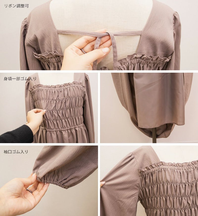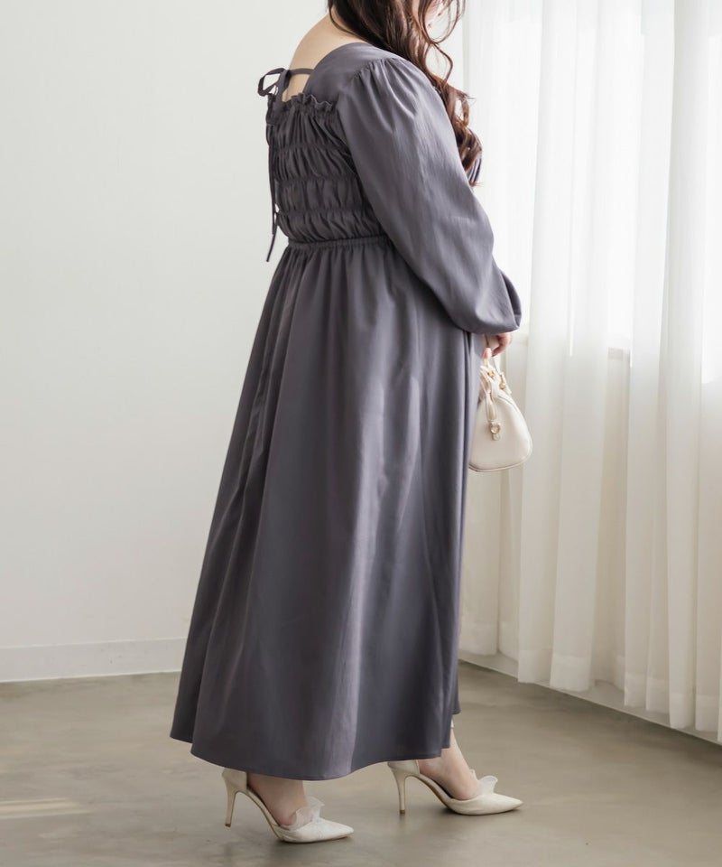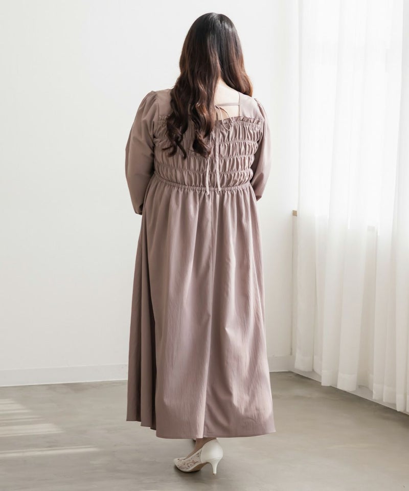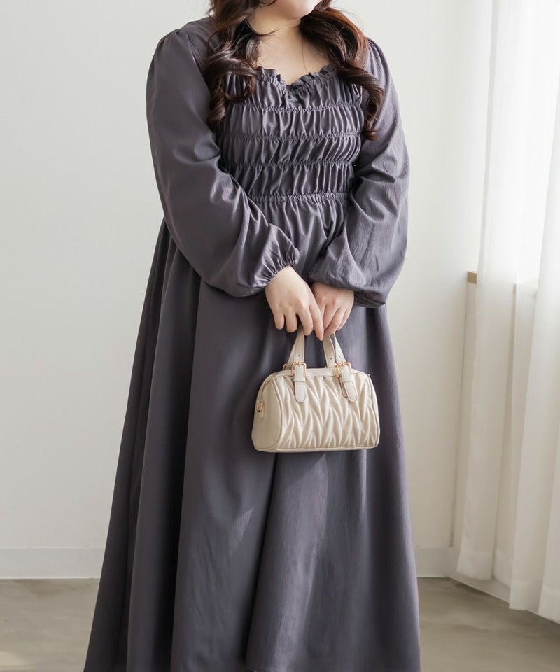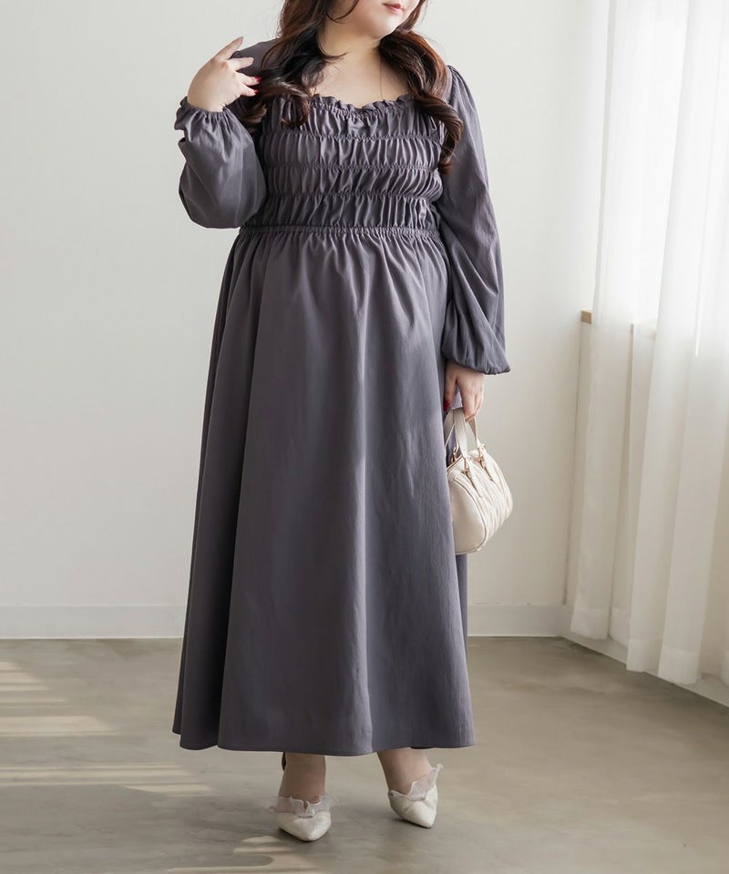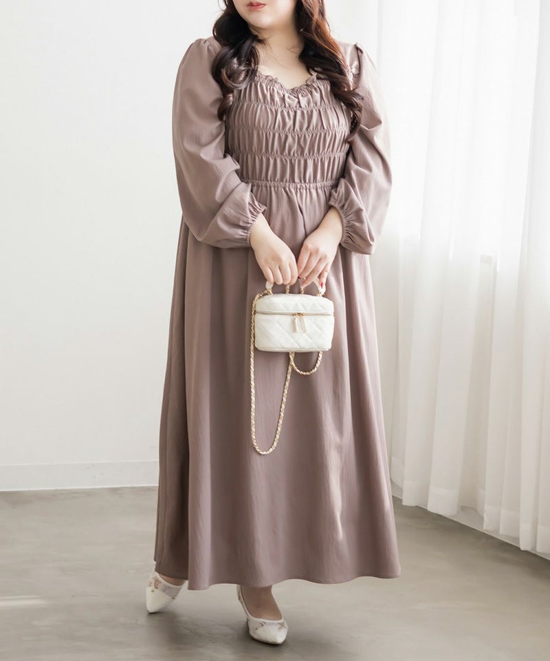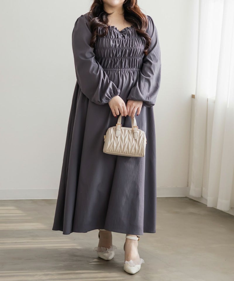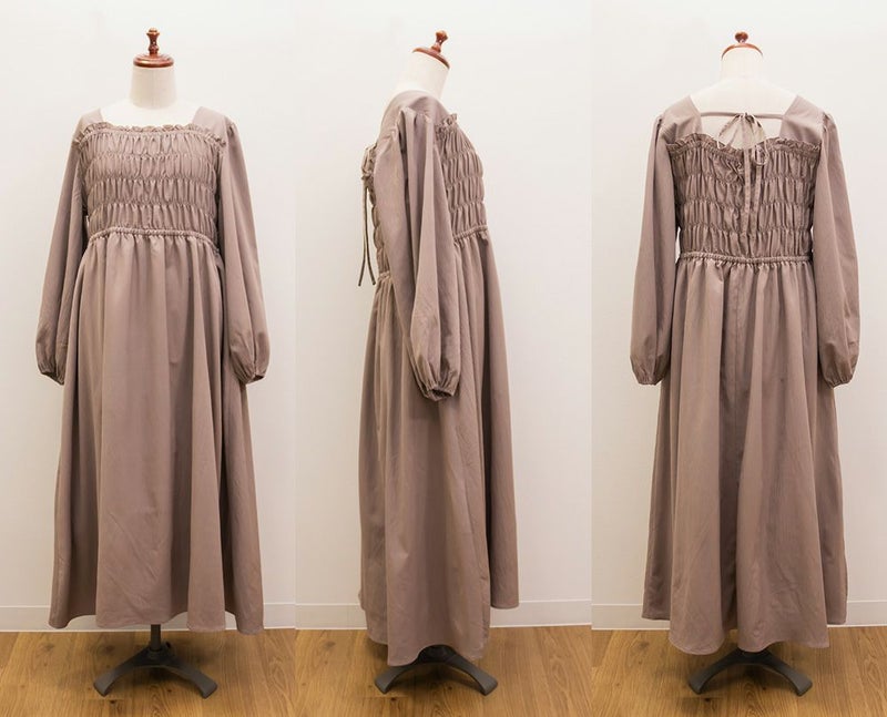 3Lサイズを着用して、身頃のシャーリングがしっかり伸びて、フィットしつつラクな着心地でした◎ 高めのウエスト切替で自然とスタイルアップして見えて、スカートはふんわり広がる軽やかなシルエットが可愛いです! フェミニンな印象ですが、スニーカーやキャップを合わせてカジュアルダウンするのもおすすめです。 お出かけや旅行にもぴったりな着映えワンピです!