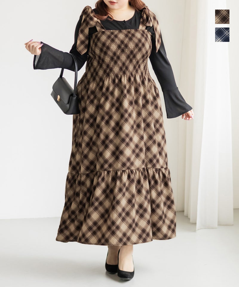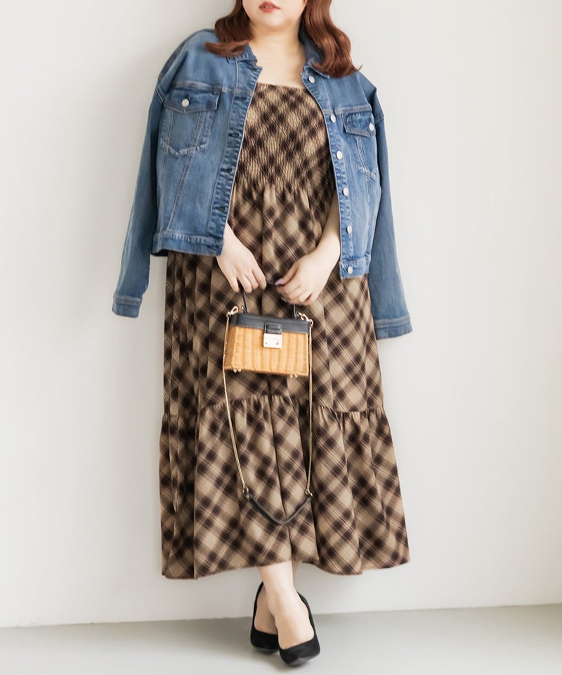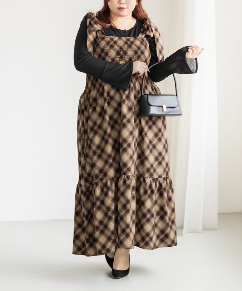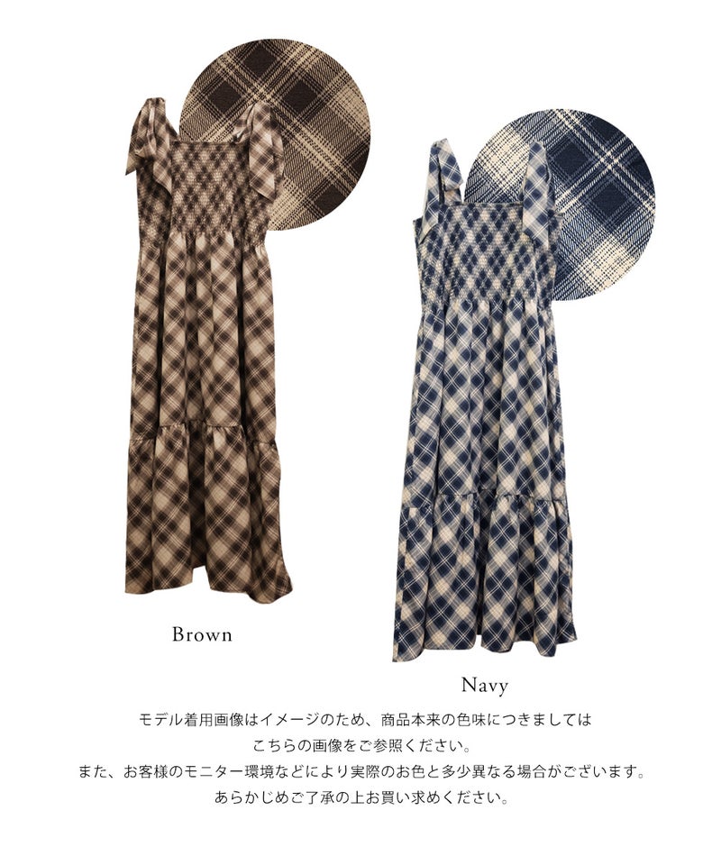 チェック柄シャーリングキャミワンピース チェック柄シャーリングキャミワンピース