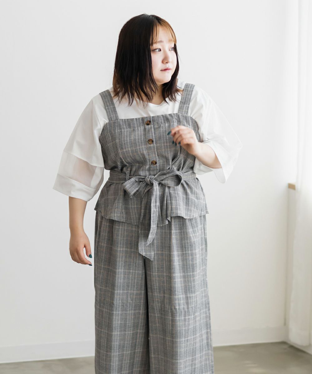 他の画像を見る チェック柄ウエストベルト付きビスチェ&ワイドパンツセット 大きいサイズ 3L 4L クレット チェック柄ウエストベルト付きビスチェ&ワイドパンツセット 2025年6月上旬販売価格 ¥ 5,940 ↓ ¥ 2,970 税込 詳細を見る お気に入りに登録する