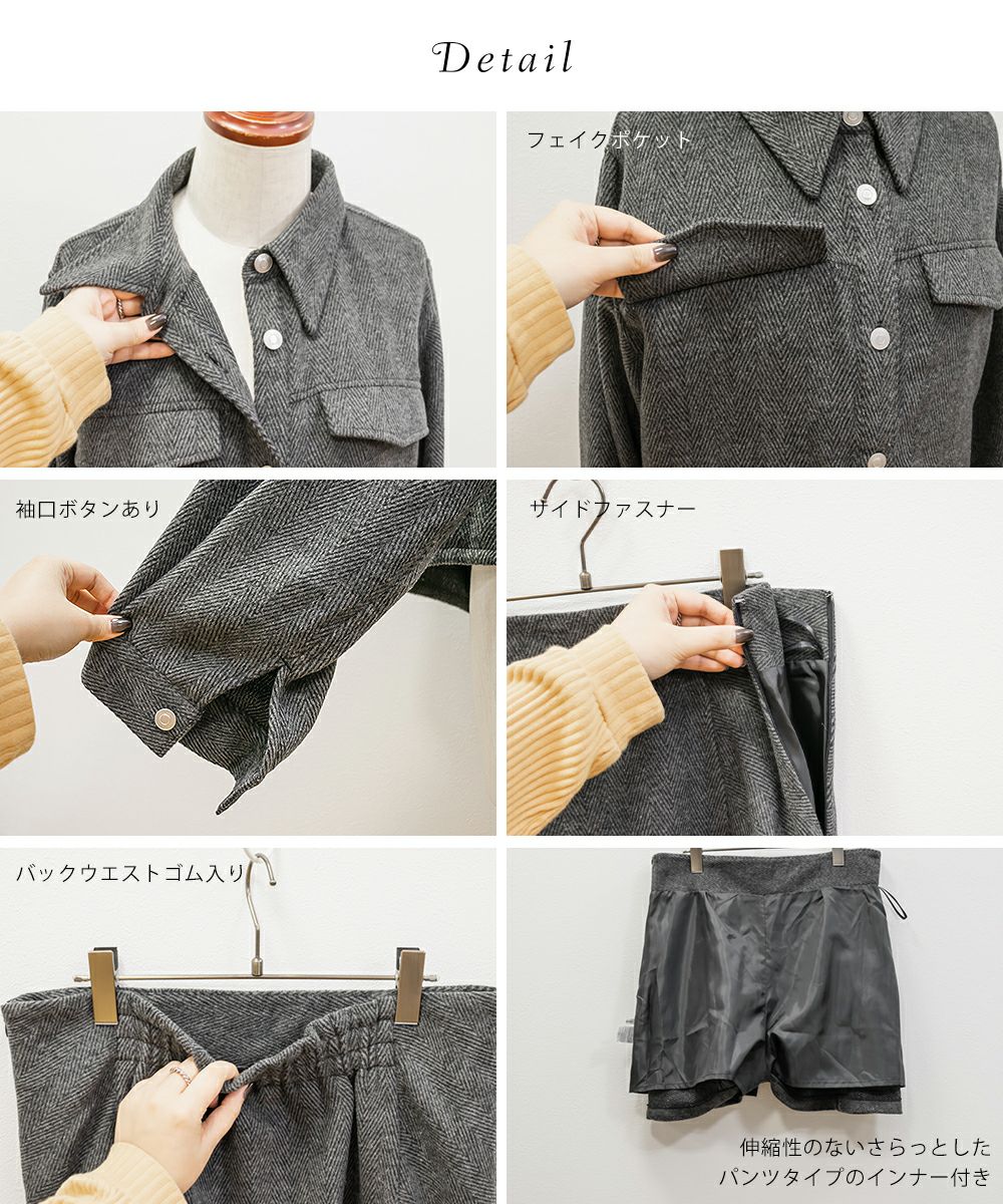 他の画像を見る ヘリンボーン ショート ジャケット ミニ スカート セット 長袖 秋冬 セットアップ カジュアル フェミニン ヘリンボーンショートジャケット&ミニスカートセット 2025年1月上旬販売価格 ¥ 7,920 ↓ ¥ 4,290 税込 在庫切れ 詳細を見る お気に入りに登録する