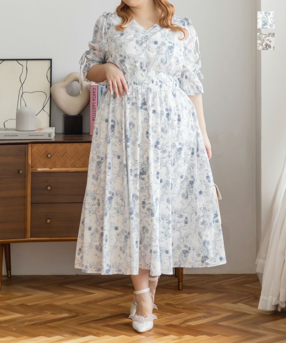 他の画像を見る クレット 大きいサイズ ぽっちゃり LL 3L 4L シャーリングワンピース デート 半袖 夏 春 CLETTEオリジナル★ウエストシャーリング花柄ワンピース ¥ 7,590 税込 在庫切れ カートに入れる お気に入りに登録する