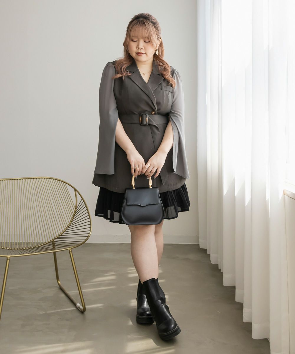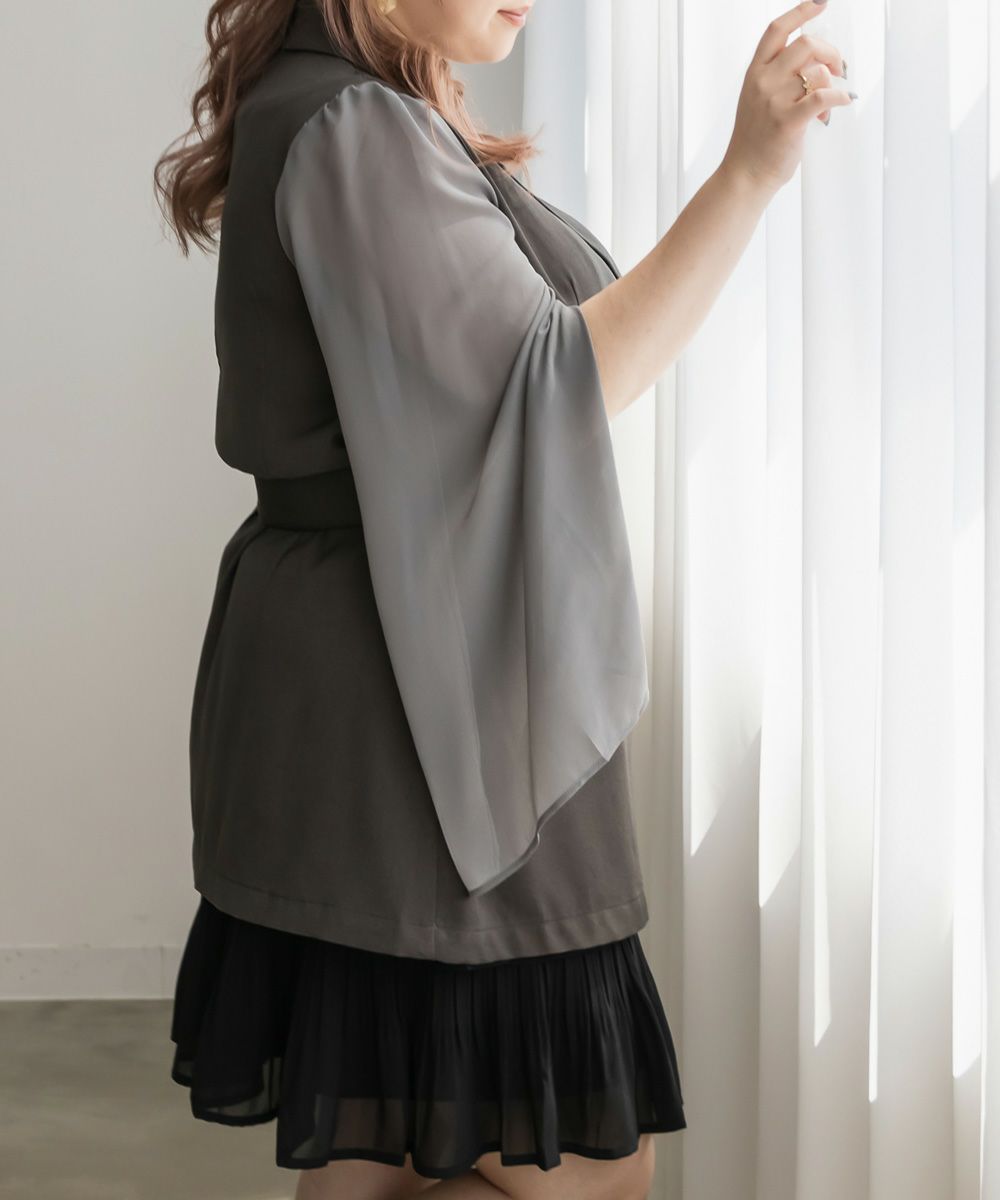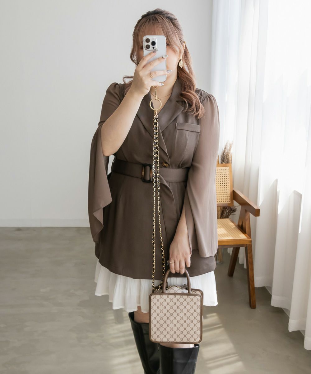 3Lを着てちょうどいいサイズでした。ジャケットでだけどボタンを締めてトップス風に着ることができます。胸ポケットはフェイクですがウエストベルトは自分好みに絞り具合を調節可能◎ウエストを引き締めてヒップラインまで隠してくれる丈なので、メリハリのあるシルエットで着やせできます。内側袖スリットで自然と手元が上品に見えて、二の腕が露出することがないのでとっても細見えできるデザイン♪袖が風通しが良いので、春・夏・初秋までロングシーズン使えるのも嬉しいです!ボトムはミニ丈・ナロースカート・パンツと合わせるとバランスが良いのでおすすめです!