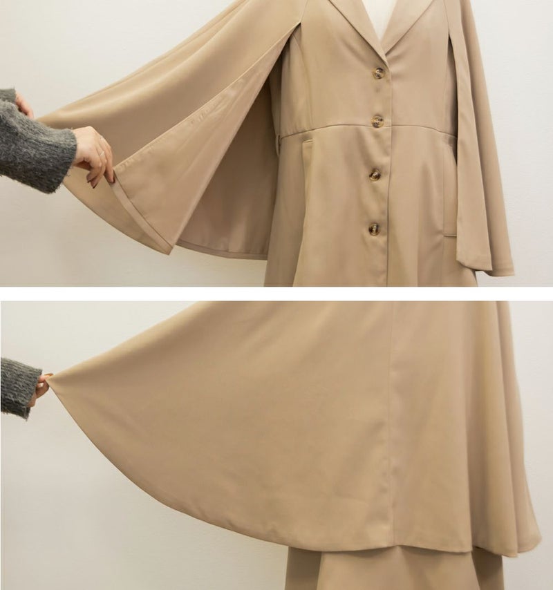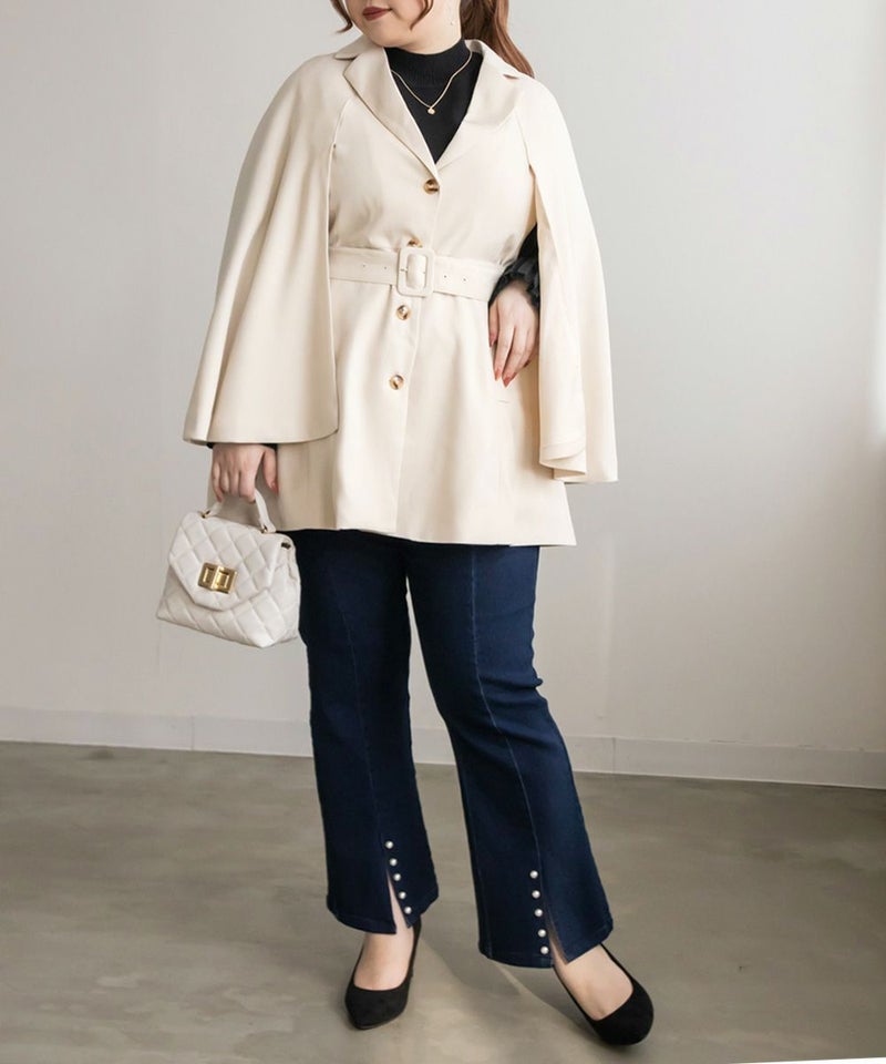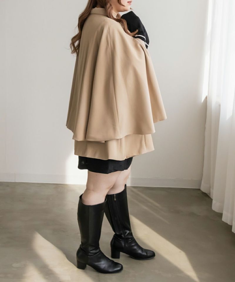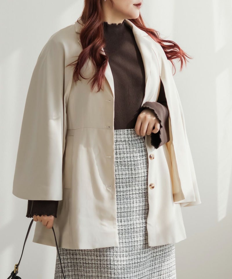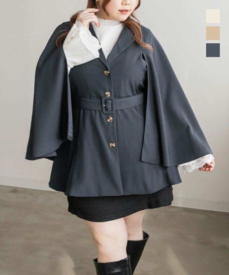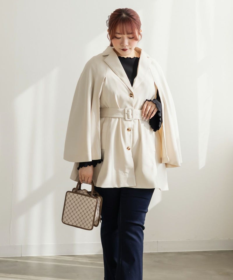 3Lを着てちょうどいいサイズ感でした。トレンドをしっかり押さえつつ、裏地付きなど高級感もあり防寒もできるので今季おすすめの優秀アウターです♪真冬は少し寒いかもですが、春秋のアウターとして重宝する1枚。ケープのデザインが今っぽくて、前から見たらテーラードジャケット風でお仕事などきちんとしたシーンにも使いやすいです!トレンチコートなどの代わりににもつかえる印象です。ポケットやベルト付きで実用性もデザイン性もあって可愛いジャケットです!着た時のバランスが可愛いミニボトムコーデやミニワンピースのアウター使いがおすすめです◎