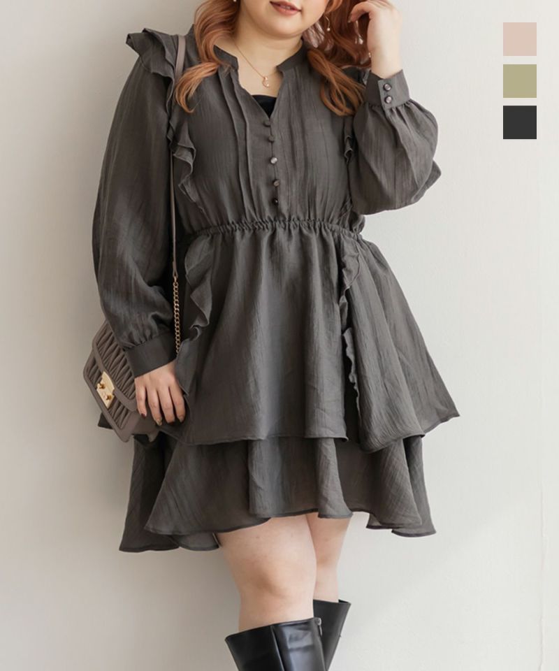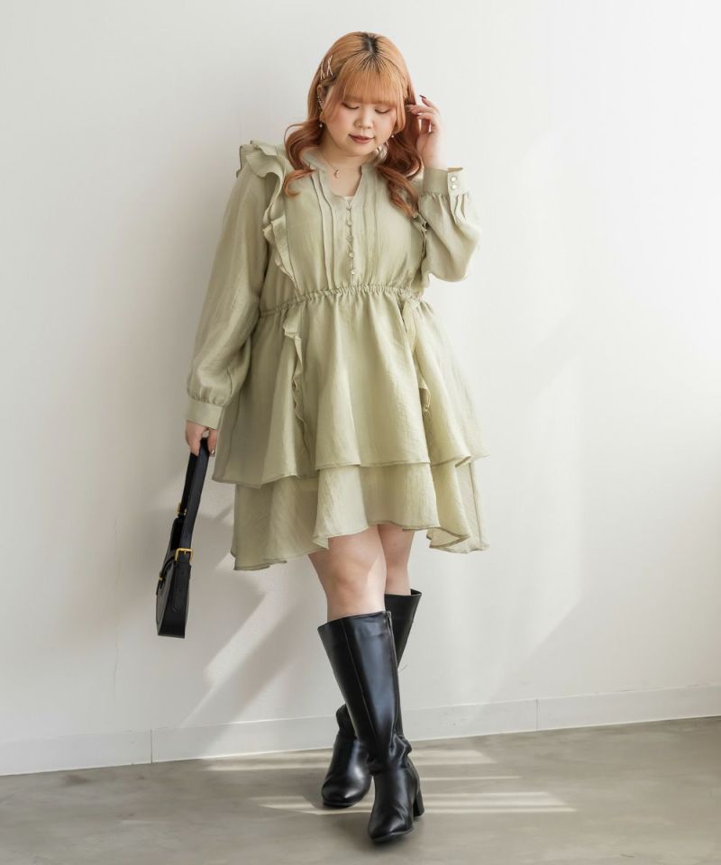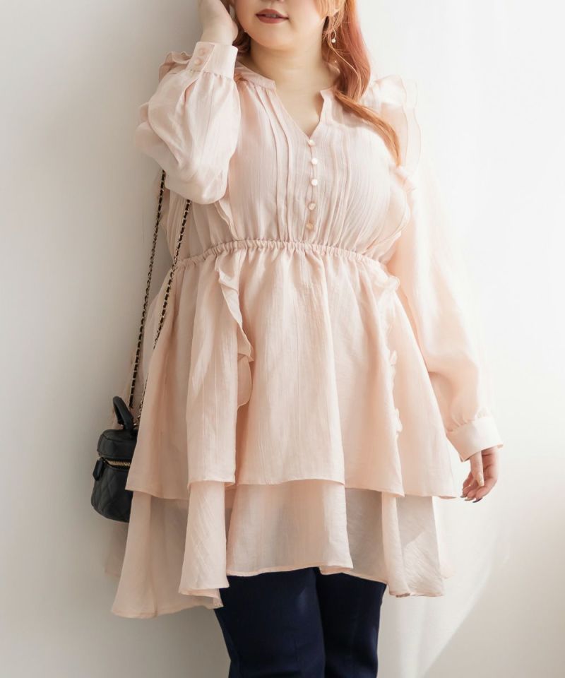 3Lサイズを着ていつも通りの着心地で、ちょうどいいサイズ感でした。チュニックだけど膝上くらいまで長さがあるのでミニワンピースとしても着回しできました◎とても軽やかで少しシアー感のある生地が秋~春先まで長く使えるのが魅力です!ウエストはゴムでらくちんな上にくびれからキュッとして広がる綺麗なシルエットがフェミニンな印象になれます♪