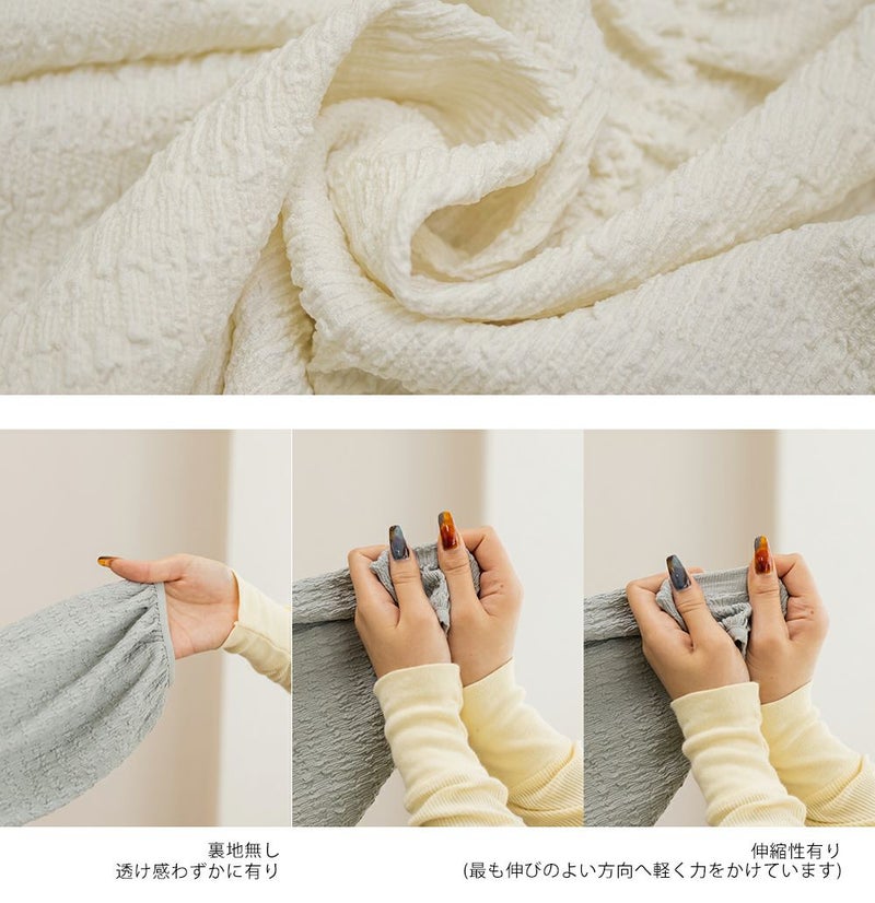 生地感 やや表面感があり、伸縮性のある柔らかな素材です。