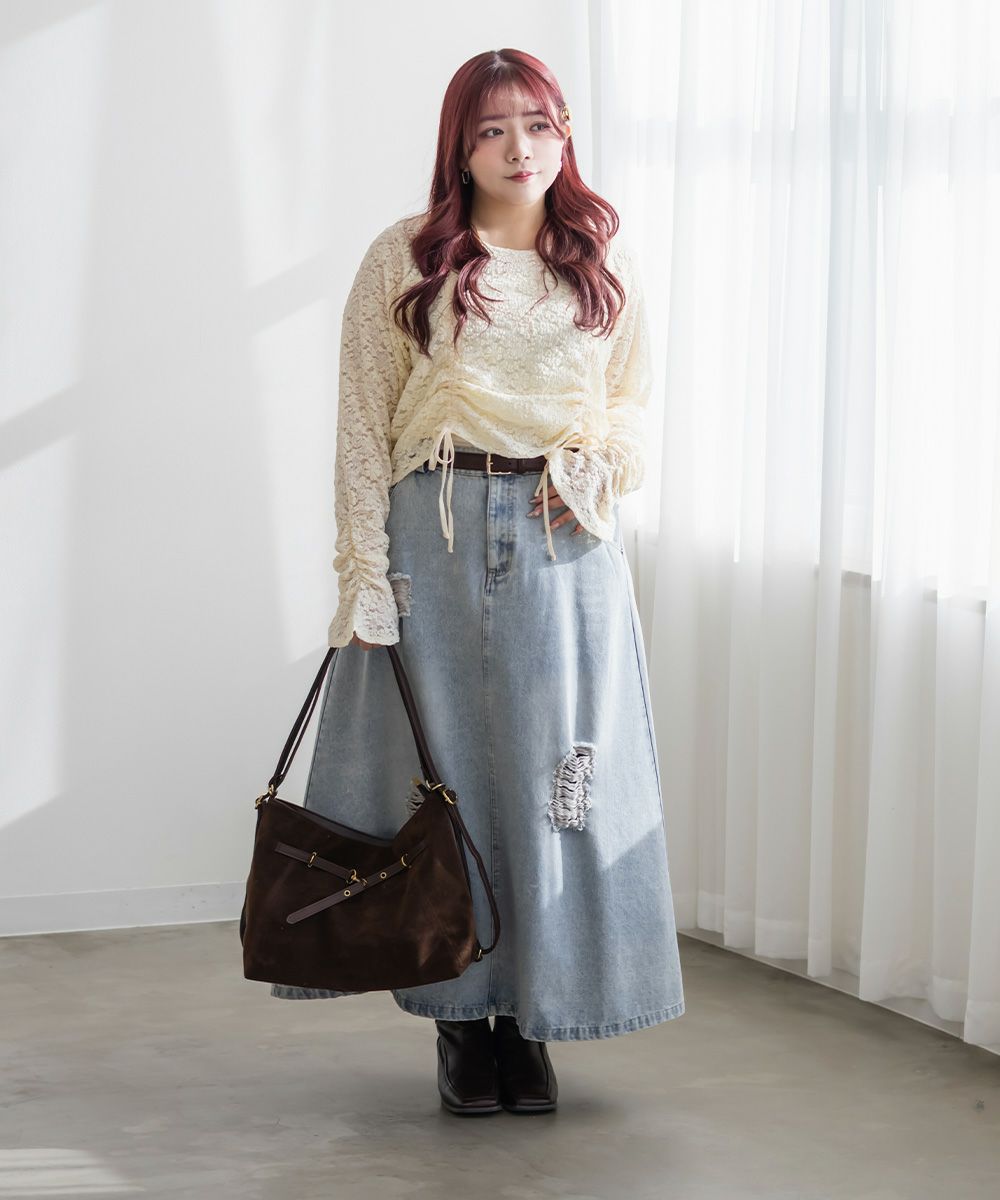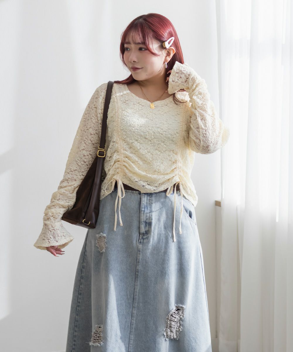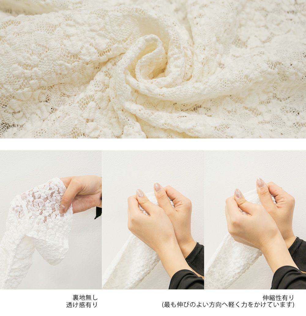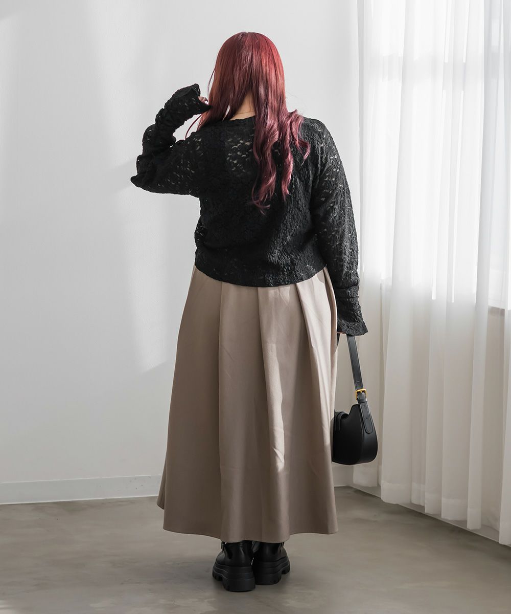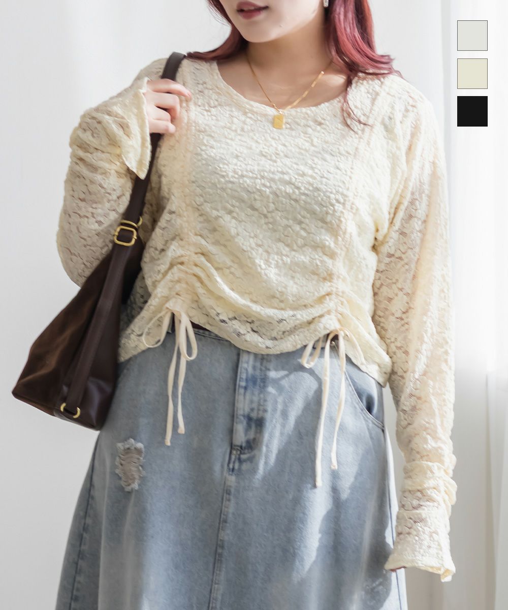 3Lを着てちょうどいいサイズでした。レースだけど程よく伸縮性のある生地でとっても着心地が良かったです!さらりとした肌触りだから、季節の変わり目とかも快適に過ごせそうです!くしゅっとシャーリングデザインで、前着丈を短くできます。人によって好みの長さがあると思うので、自分用に調節できるのはかなり嬉しいです!丈が短いと足が長く見えて、裾をインしなくていいので、お腹のポッコリもカバーしてくれます♪機能性もデザインもとっても優秀なので、着心地もおしゃれも楽しめる服を探してる方におすすめです!キャミワンピなどのインナーにもつかえて色々着回しできます◎