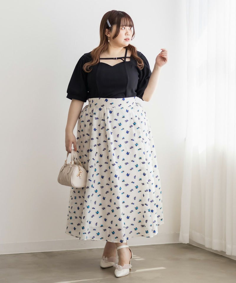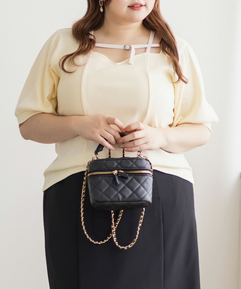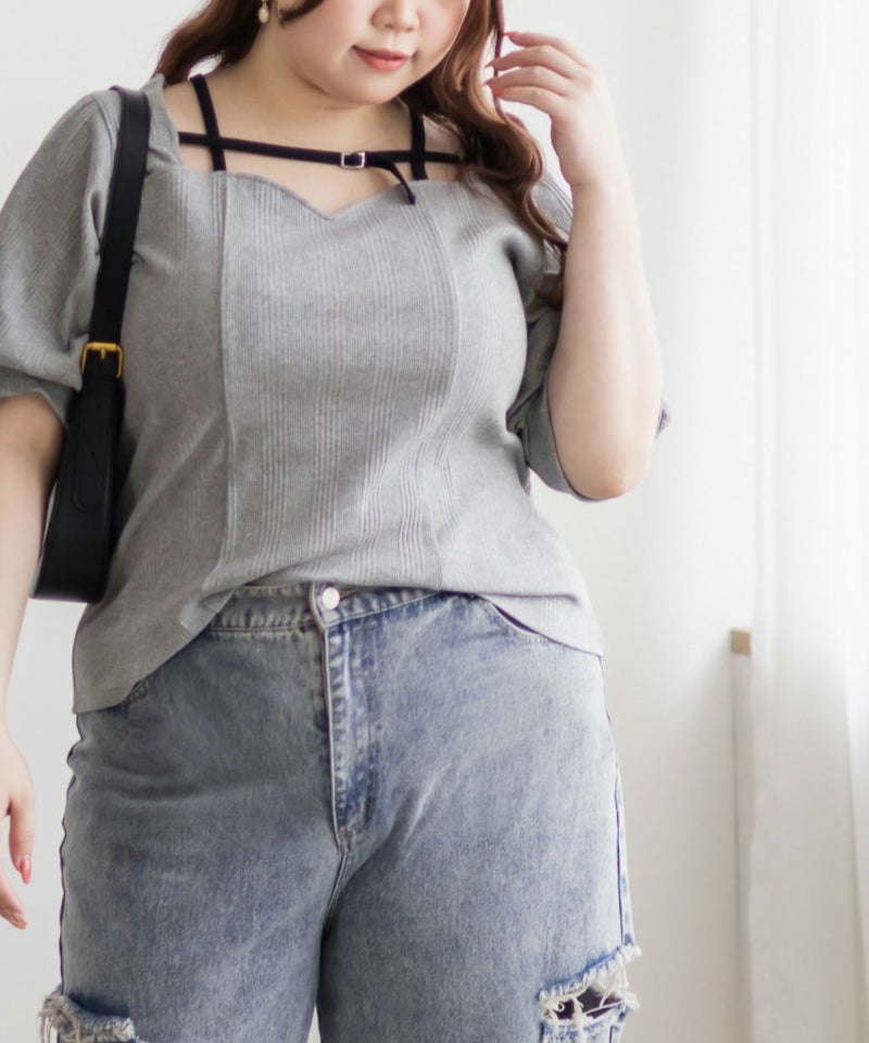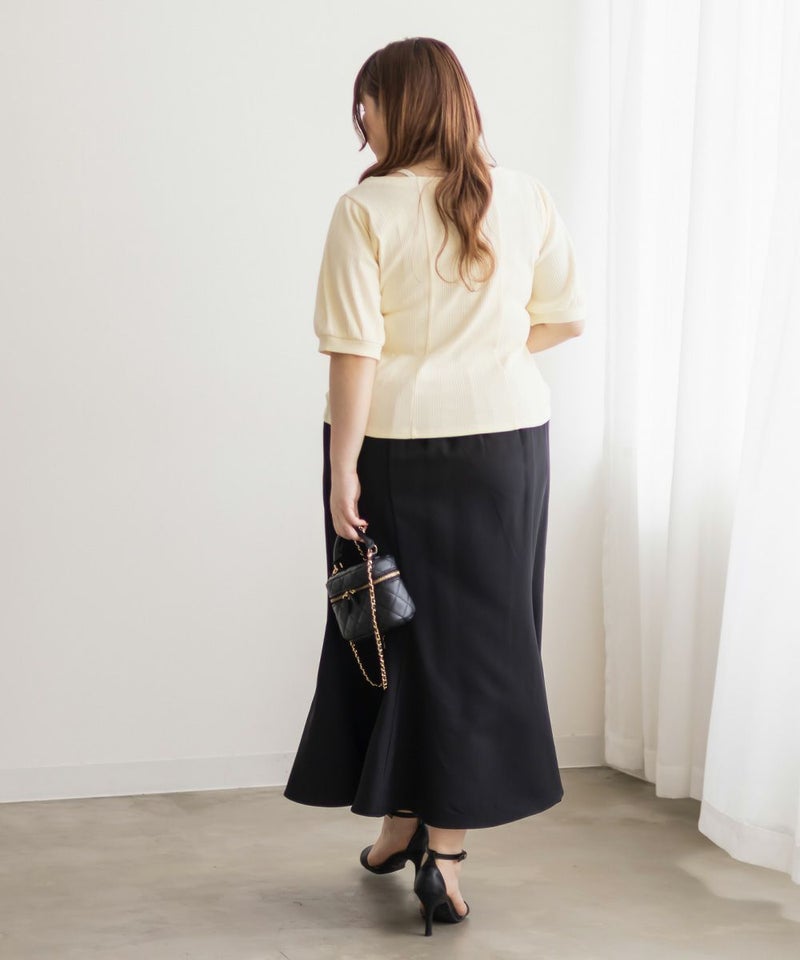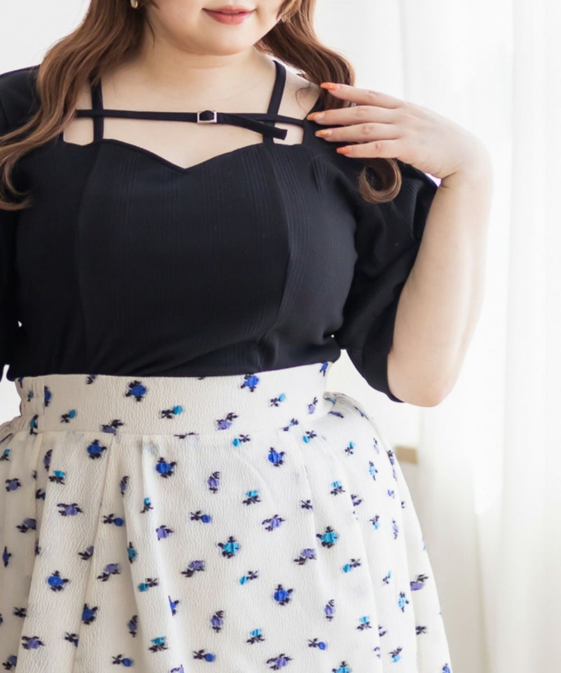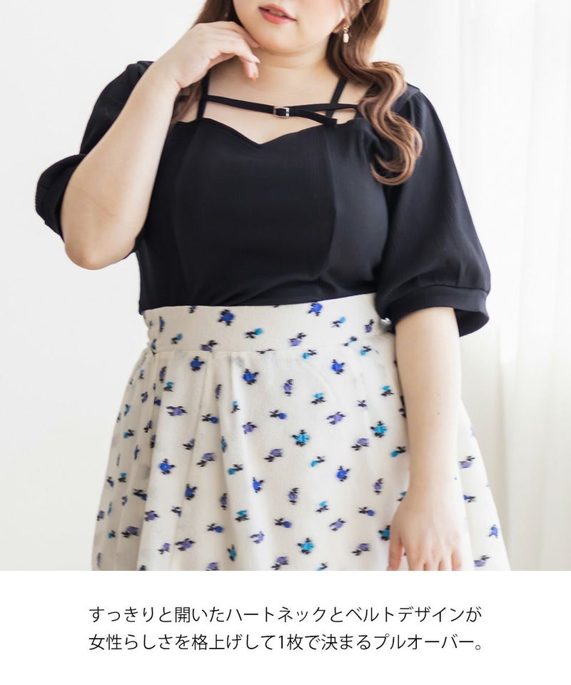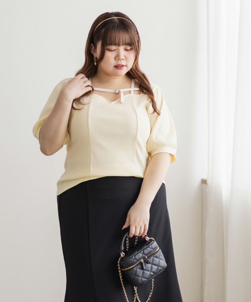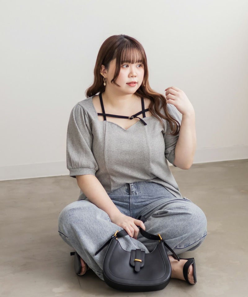 3Lサイズを着用しましたが、ぴったりちょうどいいサイズ感でした◎ピタッとなりすぎないのに、シルエットをきれいに見せてくれます。伸縮性のある生地で着心地もとてもよく、長時間着ていても窮屈さを感じませんでした。デコルテ部分のベルトデザインがアクセントになっていて、シンプルな中にさりげないおしゃれ感をプラスしてくれます!肌見せし過ぎないのにデコルテにデザインがあるだけで、しっかり抜け感を出してくれて、メリハリのあるすっきりとした印象になります◎ネックラインは程よい空き具合なので、真夏も涼しく着用出来ます!ネックレスいらずで大人っぽく着こなせるので、デートや普段のおでかけにもおすすめです!