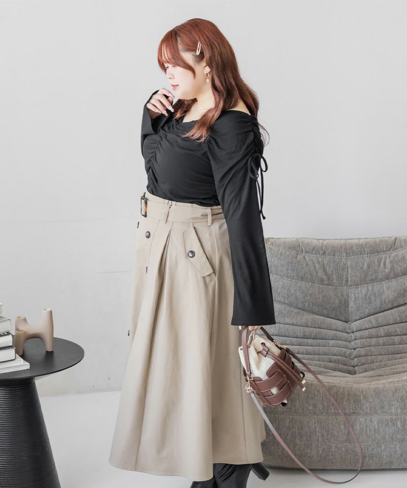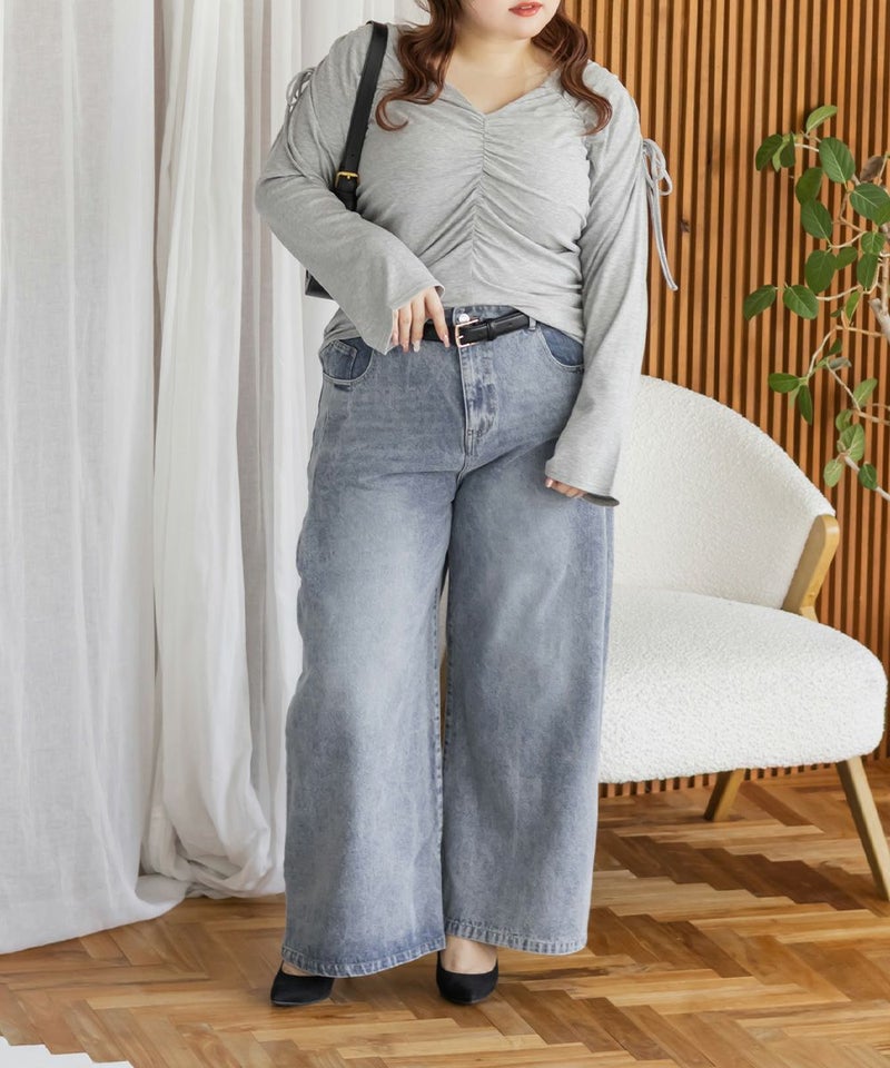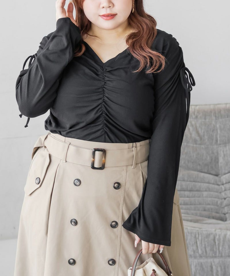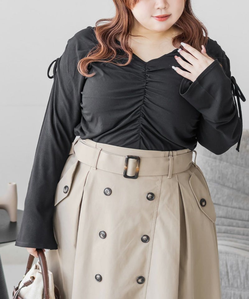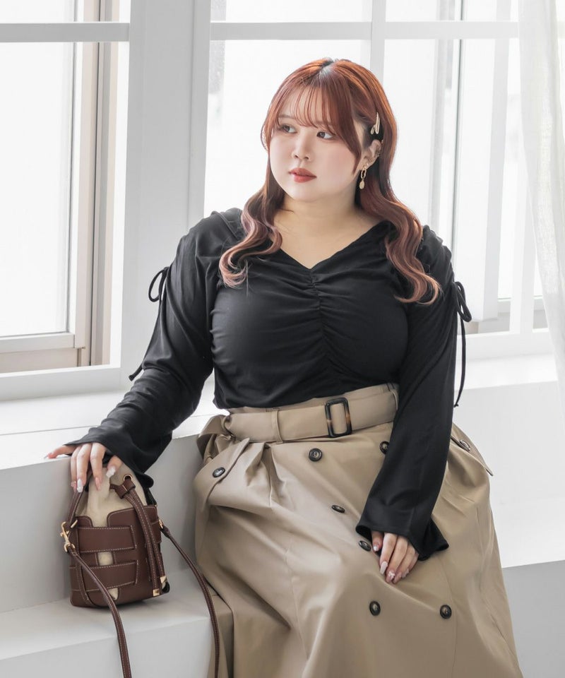 3Lサイズを着用して、ちょうどいいサイズ感で着られました。生地自体がやわらかく伸縮性もあって、肌当たりも優しいカットソーです。ギャザーが立体感を出してくれて、シンプルなのに華やかに見えるデザインです◎程よくフィット感がありながら、ギャザーが体のラインを拾いにくいのもうれしいポイント!1枚で決まるから、裾出しでデニムやスラックスと合わせるだけでもバランスよくスタイリングできます。
