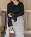 ドレープの効いたフレアジョーゼットを袖口にあしらったリブプルオーバー。ベースはシンプルだけど手元のさりげないデザインがこなれ感をプラス。重ね着しても他のアイテムとケンカしない、窮屈感の無いクルーネックデザイン。