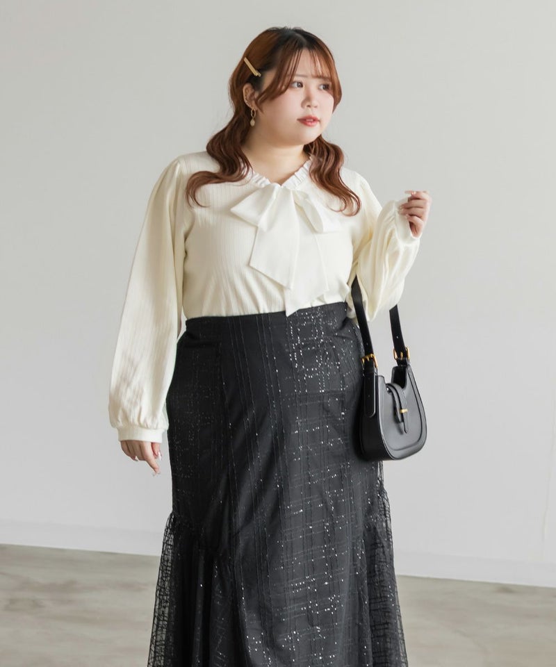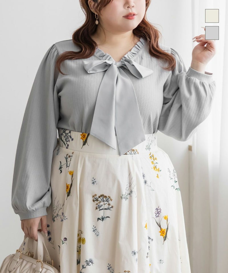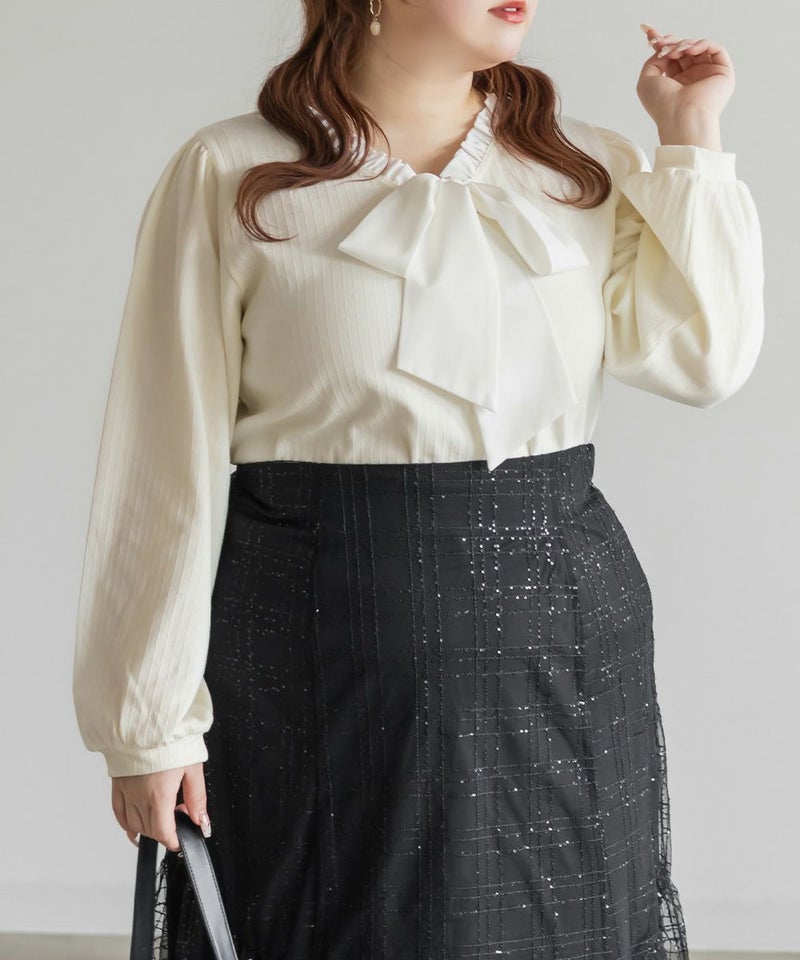 3Lサイズを着用しました。程よくゆとりを持たせたシルエットでちょうどよく、リブ素材なので伸びがよくて窮屈感なく着られました。フロントのリボンデザインが可愛くて大人フェミニンに仕上がるのが嬉しいポイント。縦ラインのリブで自然とすっきり見えて、インでもアウトでもバランス良く着られました!スカート合わせで女性らしくも、パンツで少しカジュアルに着ても可愛いです♪ ジャンスカなどのインナーにするのもおすすめ!デイリーにもお出かけにも、お仕事にも使いやすい1枚だと思います◎