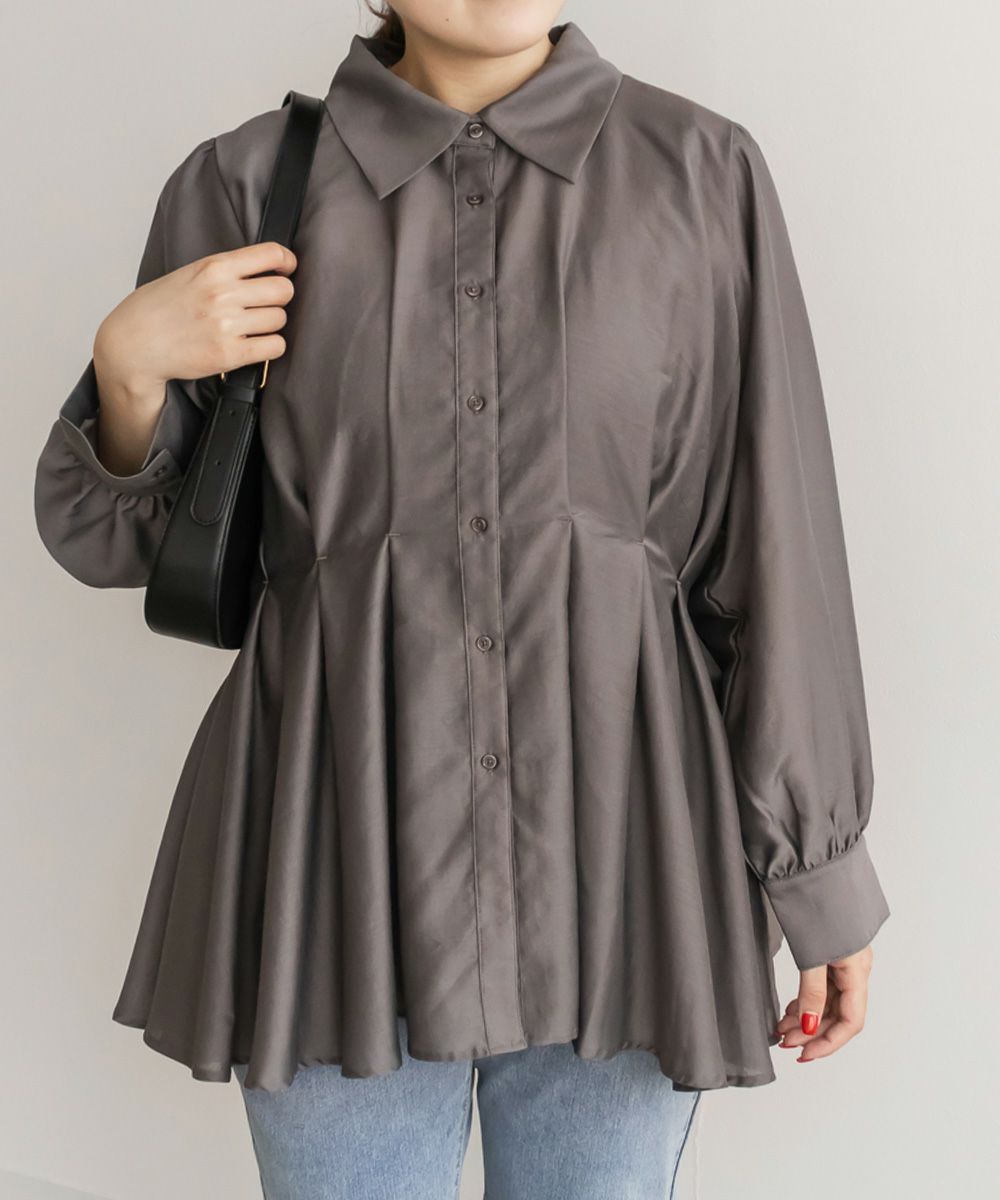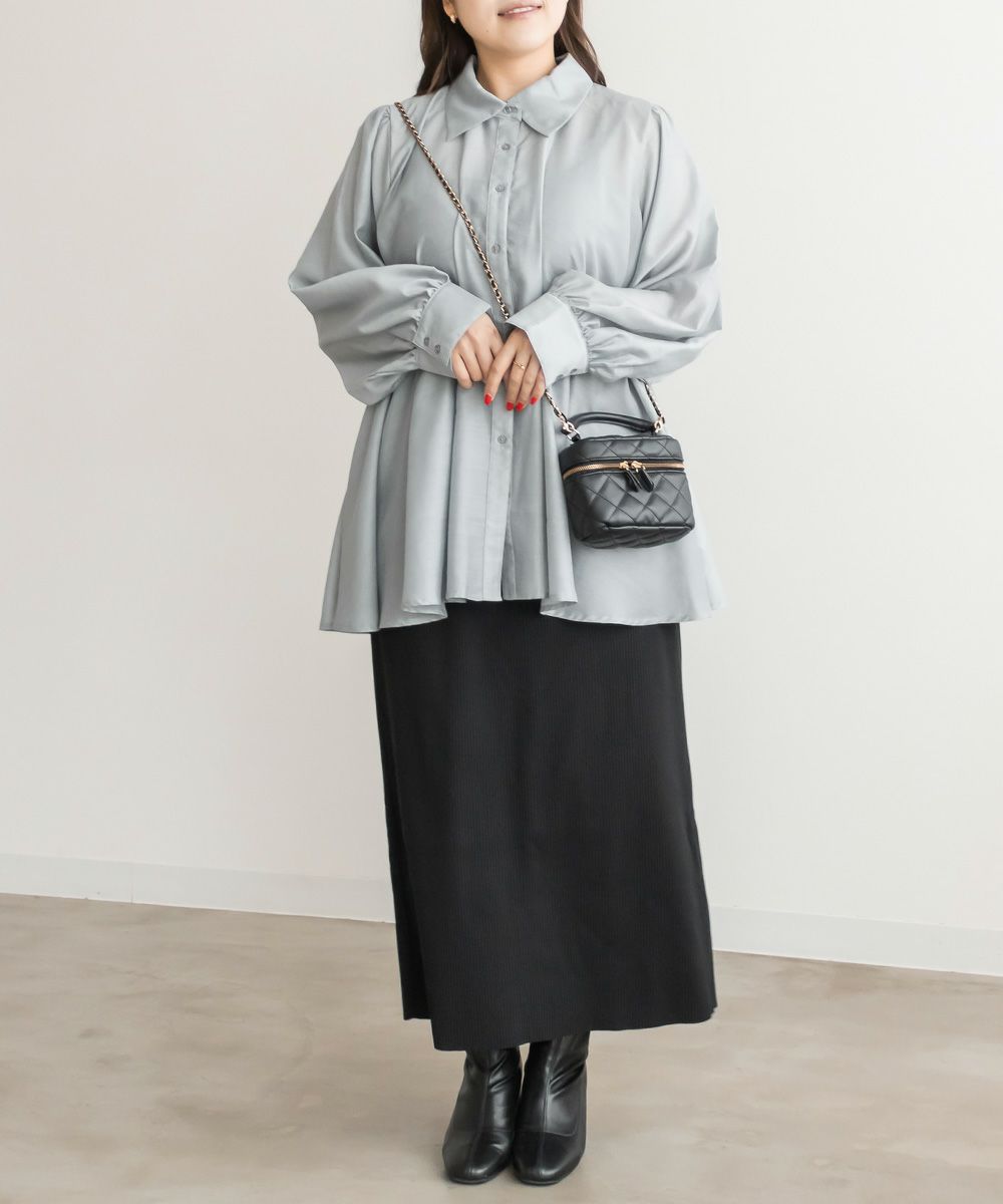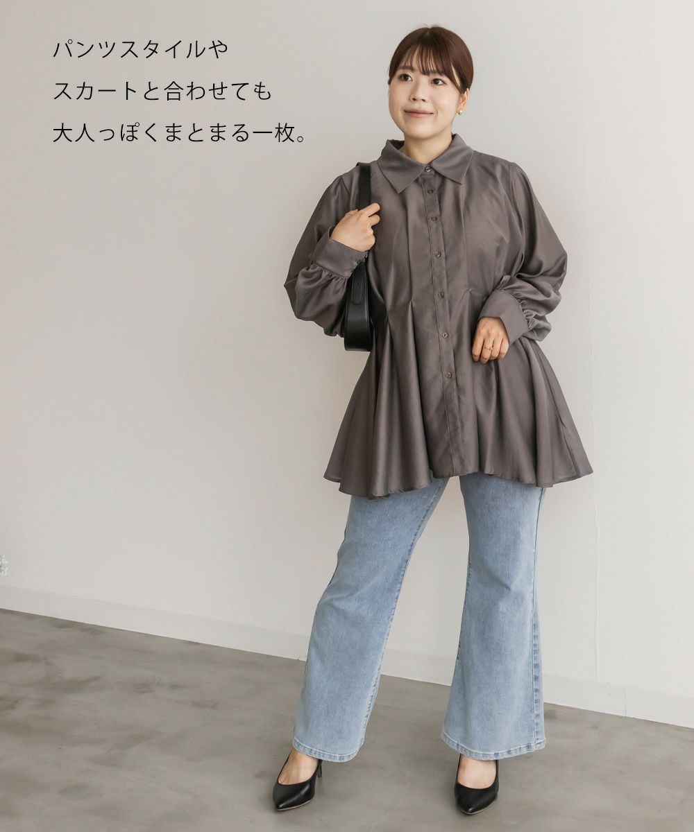 3Lサイズを着用して、程よくゆとりがある着心地で、ちょうどよく着られました!ペプラムシルエットがウエストをキュッと見せてくれ、タックが入っているので脚長&着痩せ効果も抜群です!大人っぽく上品ながら、程よく透け感のある生地がフェミニンさをプラスしてくれるブラウスです。袖もふんわりボリュームがあり、窮屈なく綺麗なシルエット感です◎切替が高い位置なのでスタイルアップできるだけでなく、気になる腰回りのカバーもしてくれます。オフィススタイルなどきっちりしたシーンにもおすすめです!