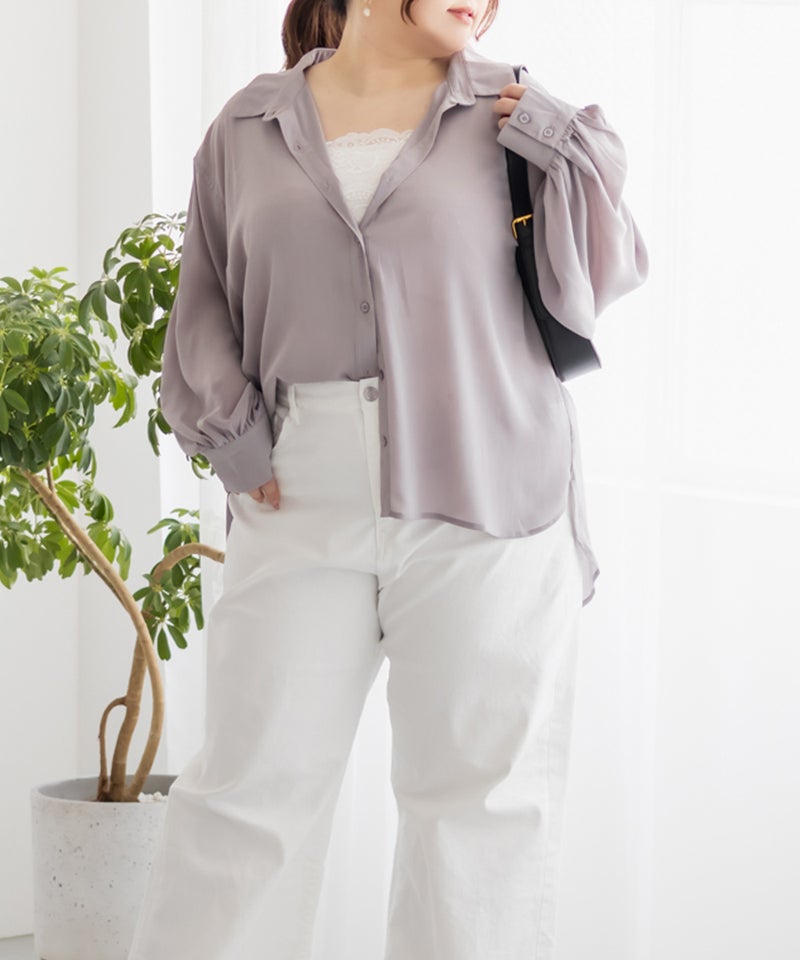 3Lサイズでゆったりと着られて、羽織りとしても使いやすいです♪軽くて柔らかい楊柳素材で、涼しげな着心地が夏にぴったり!透けすぎないシアー感がこなれ感もたっぷりです。長め丈で気になるヒップまわりもカバーしてくれるのがうれしい!羽織りとしてもメインとしても活躍してくれる、着回し力の高い1枚です◎