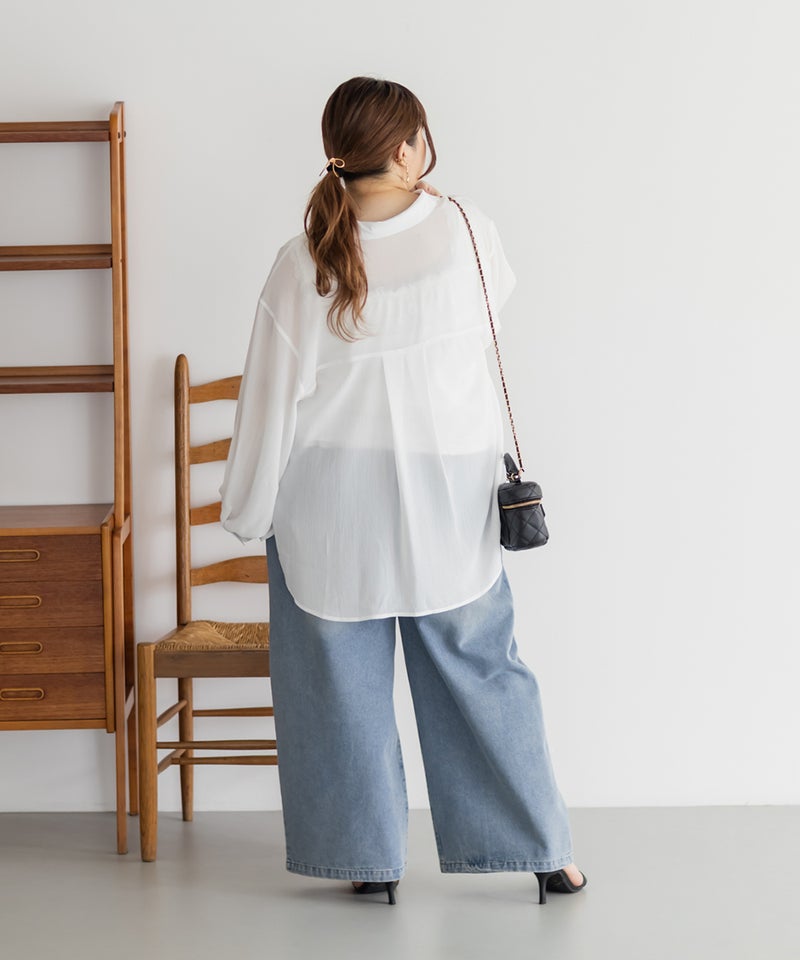生地感 落ち感のあるさらっとした、少しシワ感のあるシアー素材です。