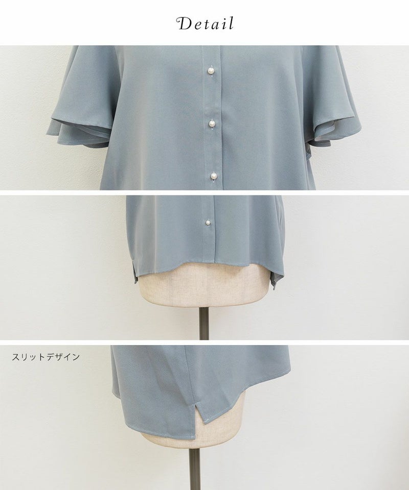 CLETTE オリジナル パールボタン フレアブラウス LL 3L 4L クレット デート フェミニン CLETTEオリジナル★パールボタンフレアブラウス