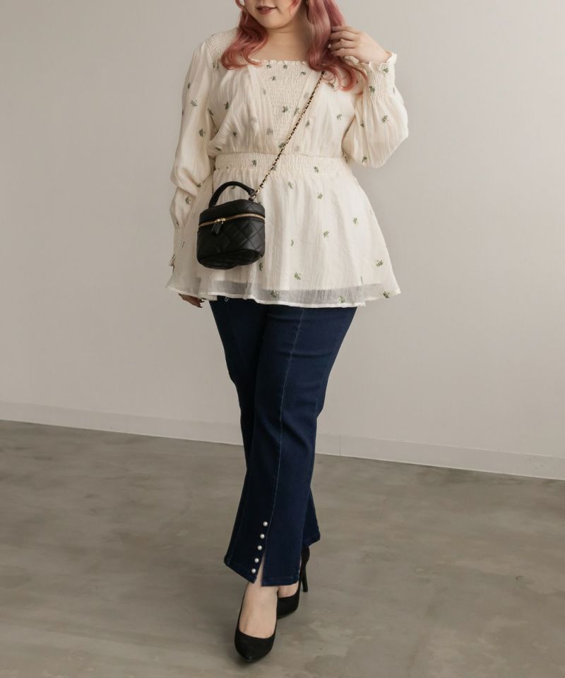 CLETTE オリジナル 裾パール ストレッチ デニム パンツ LL 3L 4L クレット カジュアル 楽ちん CLETTEオリジナル★裾パールストレッチデニムパンツ ¥ 5,940 税込 お気に入りに登録する