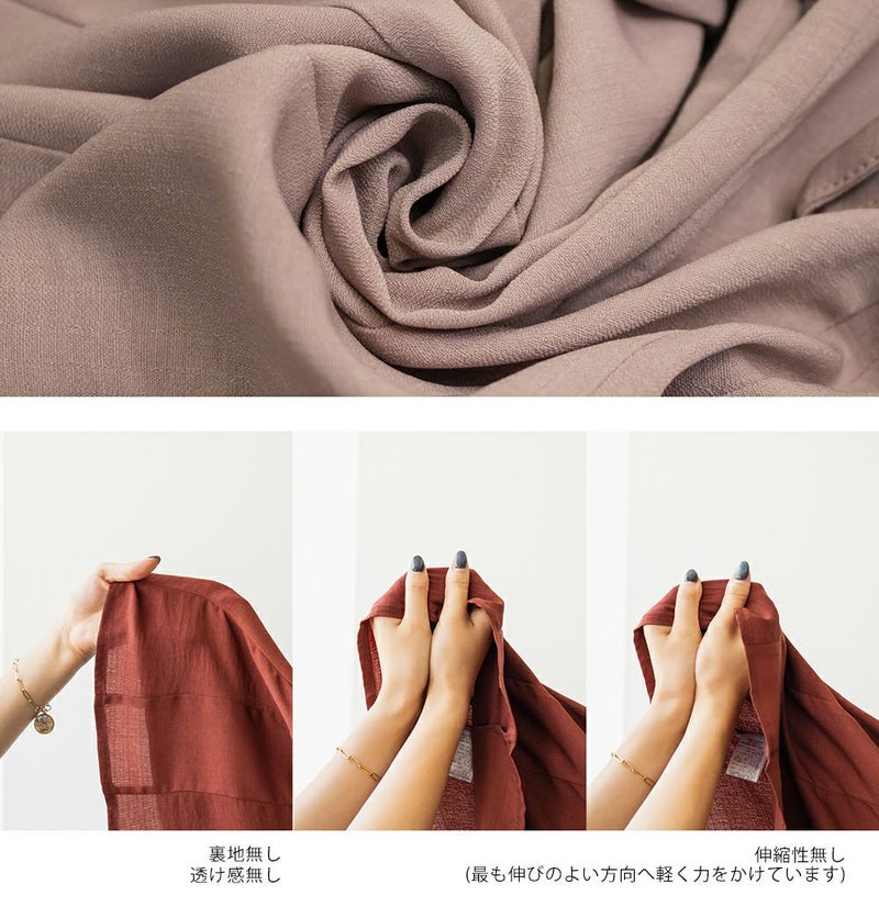裏地・透け感・伸縮性 裏地無し、透け感無し、伸縮性無し