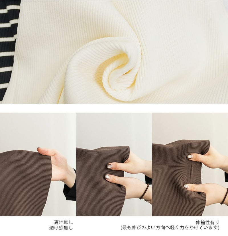 軽くて程よくハリがあり、ボディラインを拾いづらいスポンジニット。毛玉になりづらくロングシーズン使える素材。