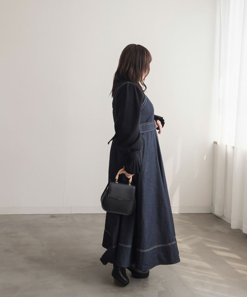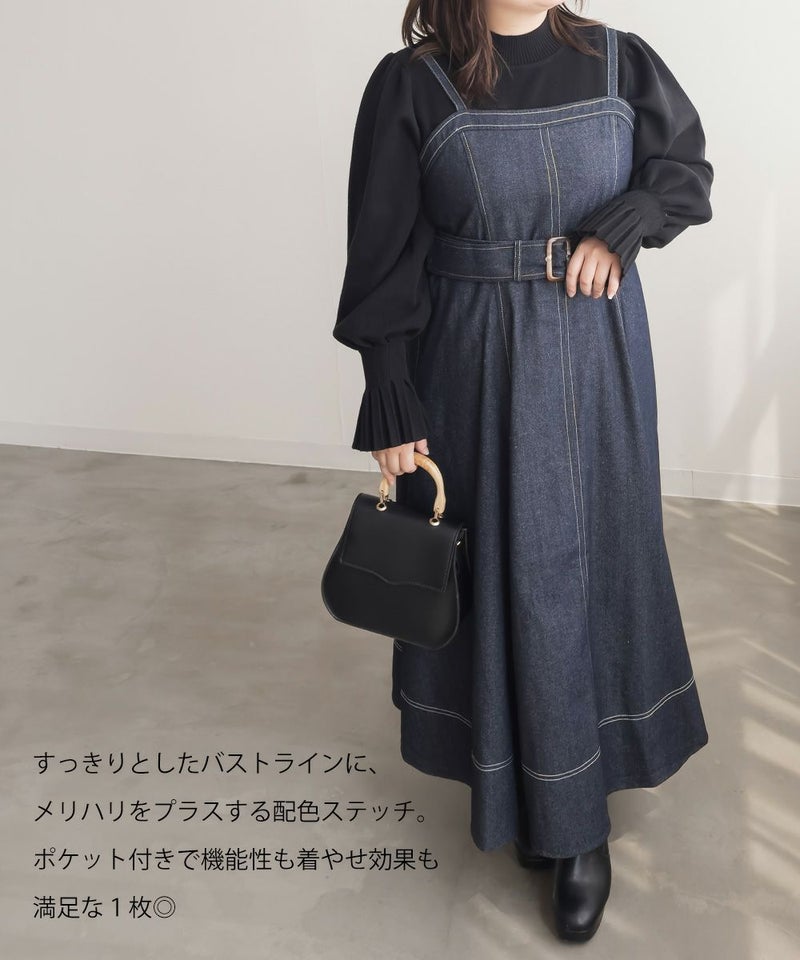 3Lを着て丁度いいサイズでした。上半身すっきりしながらお腹やお尻をしっかりカバーしてくれる着やせできるデザイン。綺麗なシルエットだけど窮屈感のない着心地だからストレスフリーにお出かけできちゃいます◎美人見えするシルエットだから、デニム生地でもカジュアルになりすぎずに大人っぽい着こなしになれます!オールシーズン使えて着映えするワンピースです♪