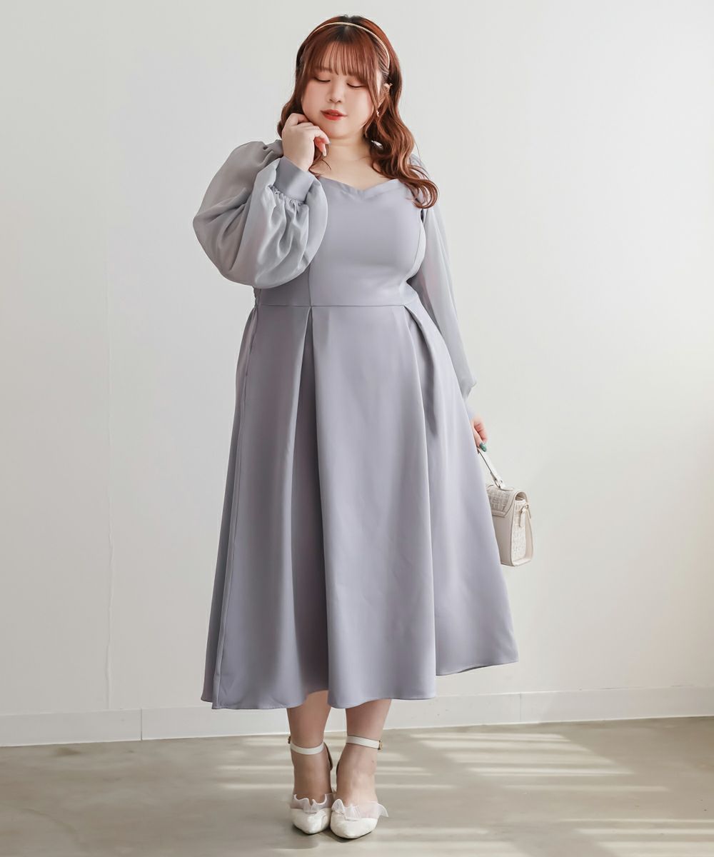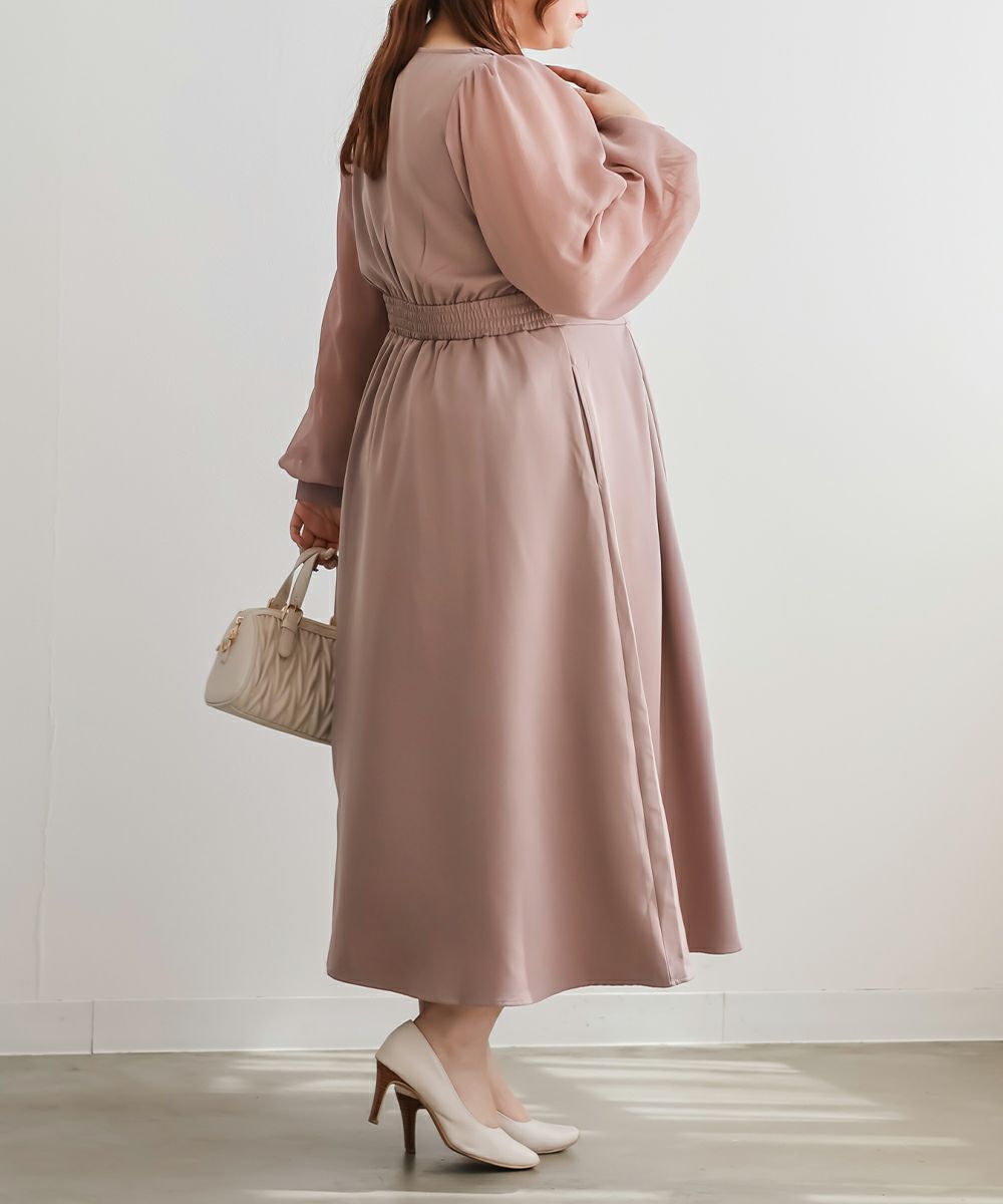 CLETTE オリジナル シアー袖 ワンピース LL 3L 4L クレット カジュアル フェミニン トレンド キレイめ CLETTEオリジナル★シアー袖ワンピース