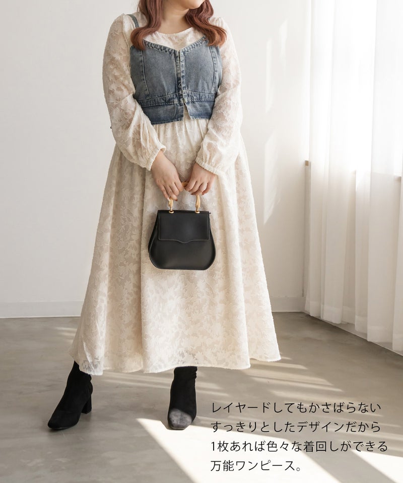 3Lを着てちょうどいいサイズでした!シンプルなデザインだけど透け感のある花柄調の生地が可愛くて大人っぽく着ることができます。デコルテから袖が透け感があるデザインで女性らしいです。春夏も使えますが、秋冬にはこの上にさらっとカーディガンを羽織ったりしてレイヤードするのもお勧めです!かさばらないすっきりとしたデザインだから、ビスチェを上に合わせたりするのもトレンド感があって可愛いです◎上品な印象なので、二次会など、ちょっと綺麗めなシーンにも使えちゃいます!