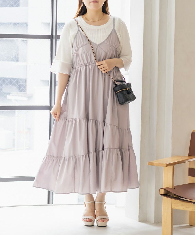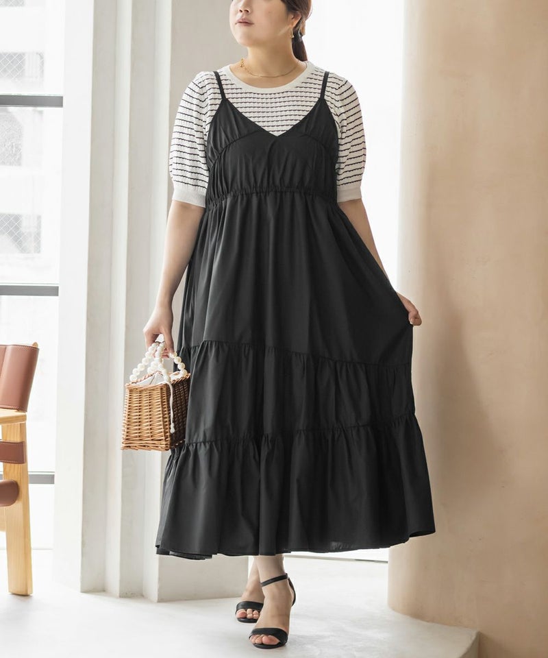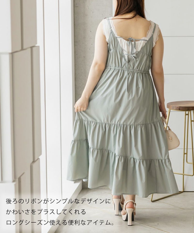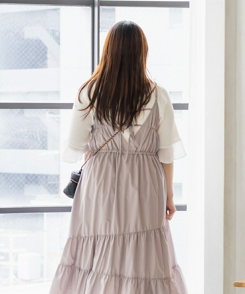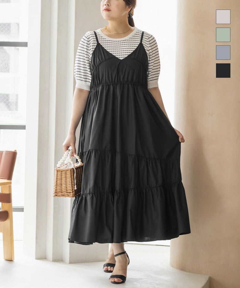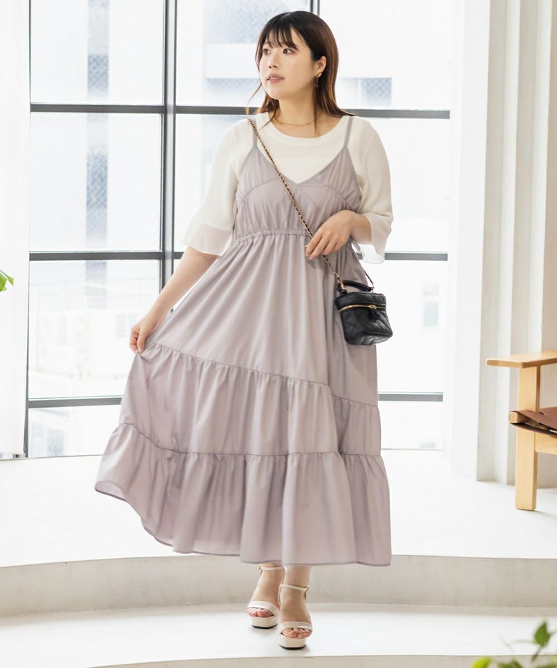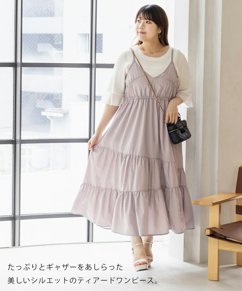 3Lサイズを着用しました。程よくゆとりを持たせたシルエット感で、厚みのあるインナーを合わせても問題なさそうです◎ 胸元の切替やギャザーで自然にメリハリが出て、バランスよく着こなせました! 斜めのティアードデザインが広がりすぎずフェミニンな雰囲気になって、シンプルなキャミワンピに飽きてきた方にもおすすめ!無地なのでインナーや小物合わせで印象チェンジしやすく、着回し力も高そうです!カラバリが可愛くて、テンションの上がるキャミワンピです♪